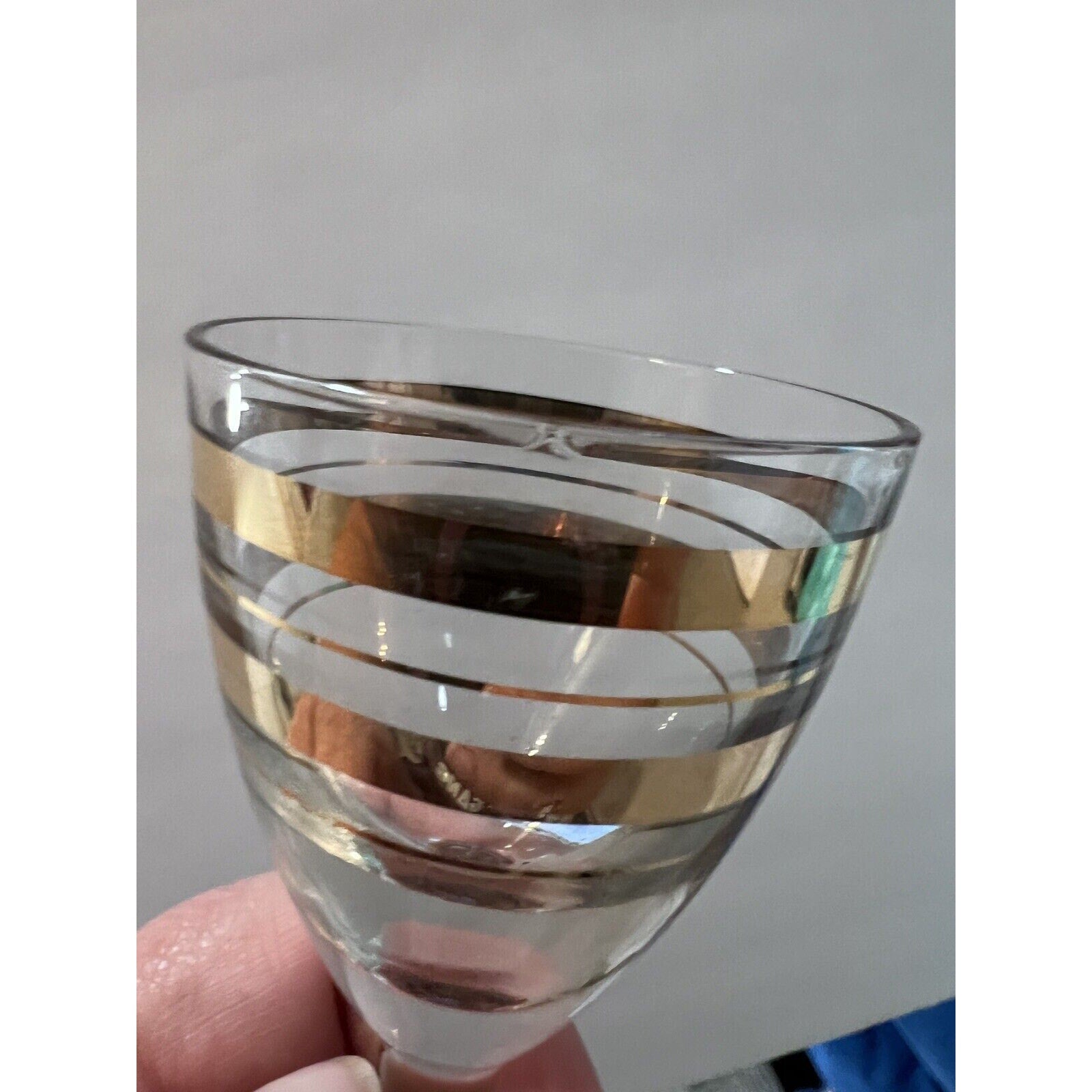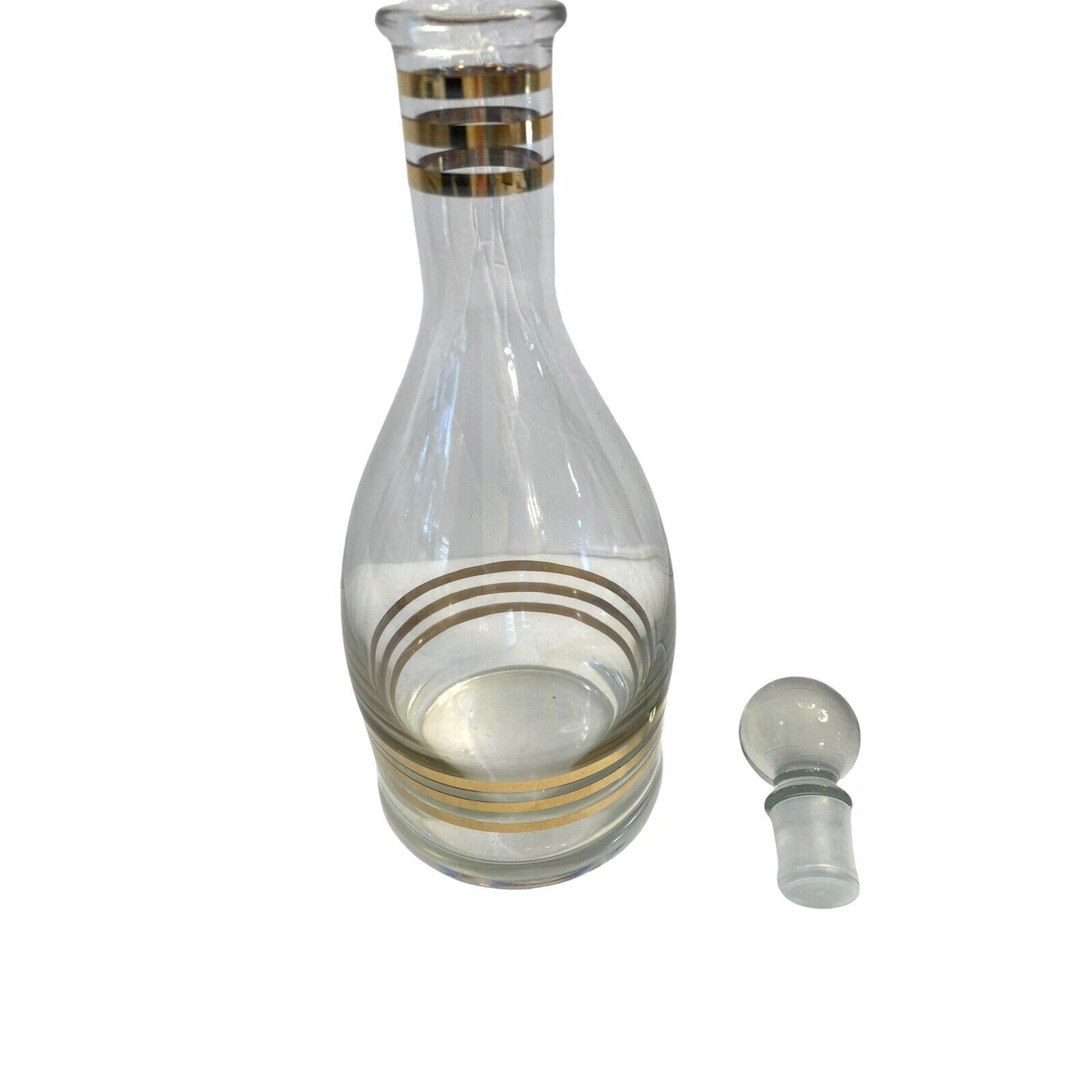 MCM Clear Glass Decanter 6 Glasses Gold Accent Dapper Debonair Classic Bar Set
