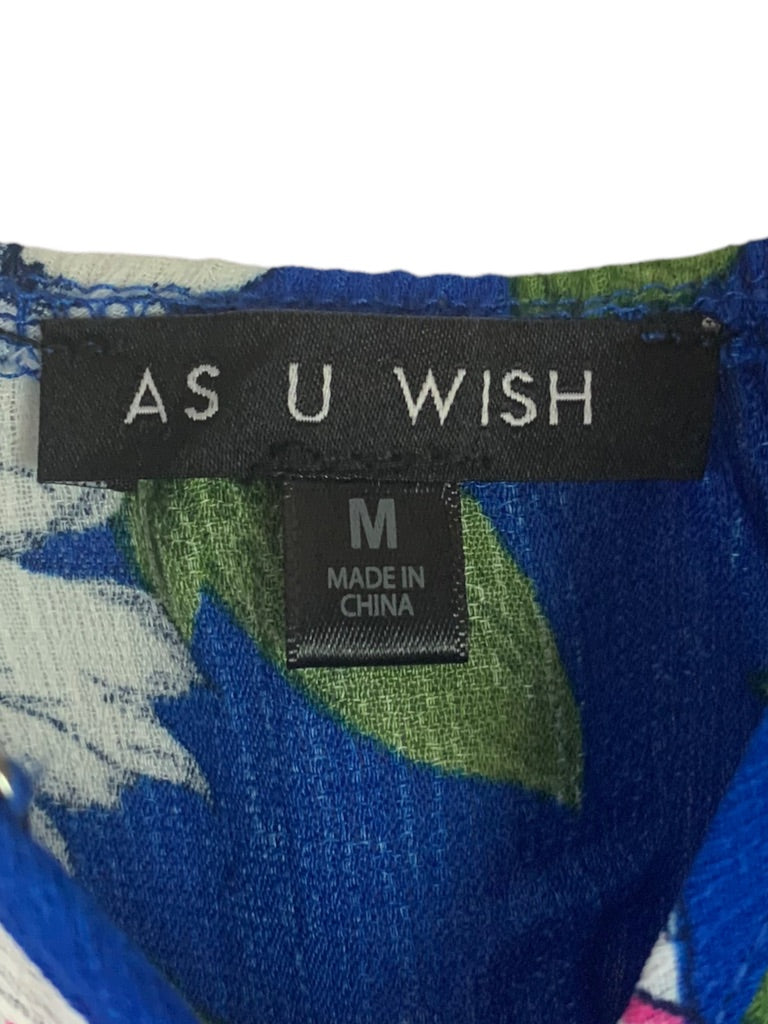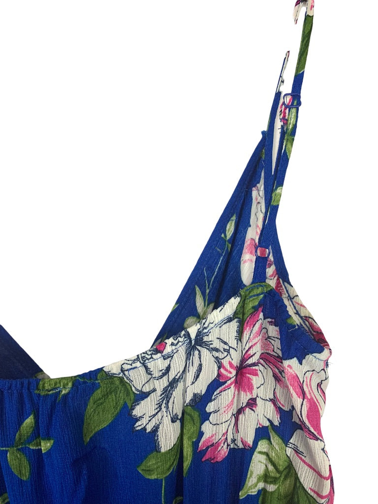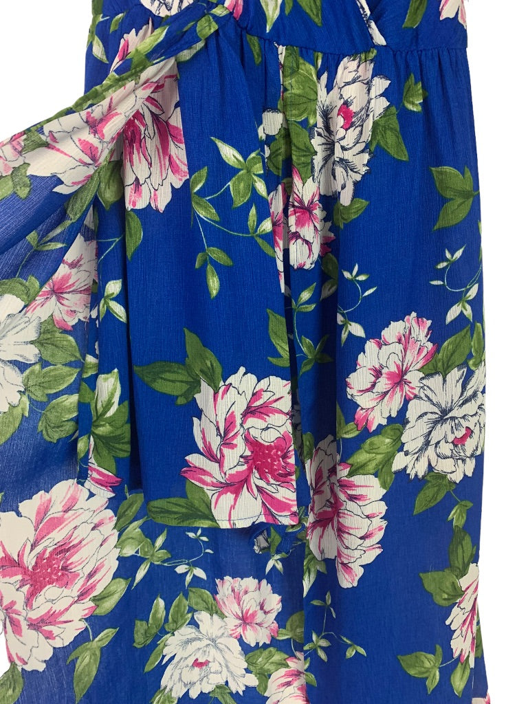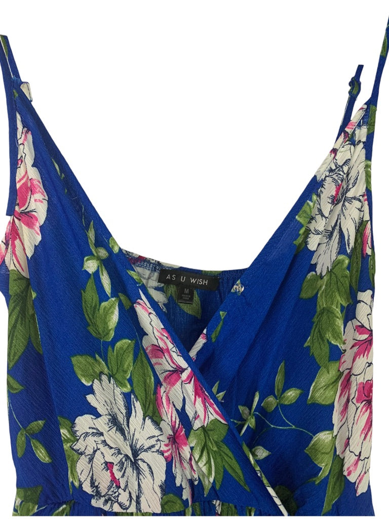 Medium as you wish Women's Floral Print Romper with Skirt Flowy Blue Pink