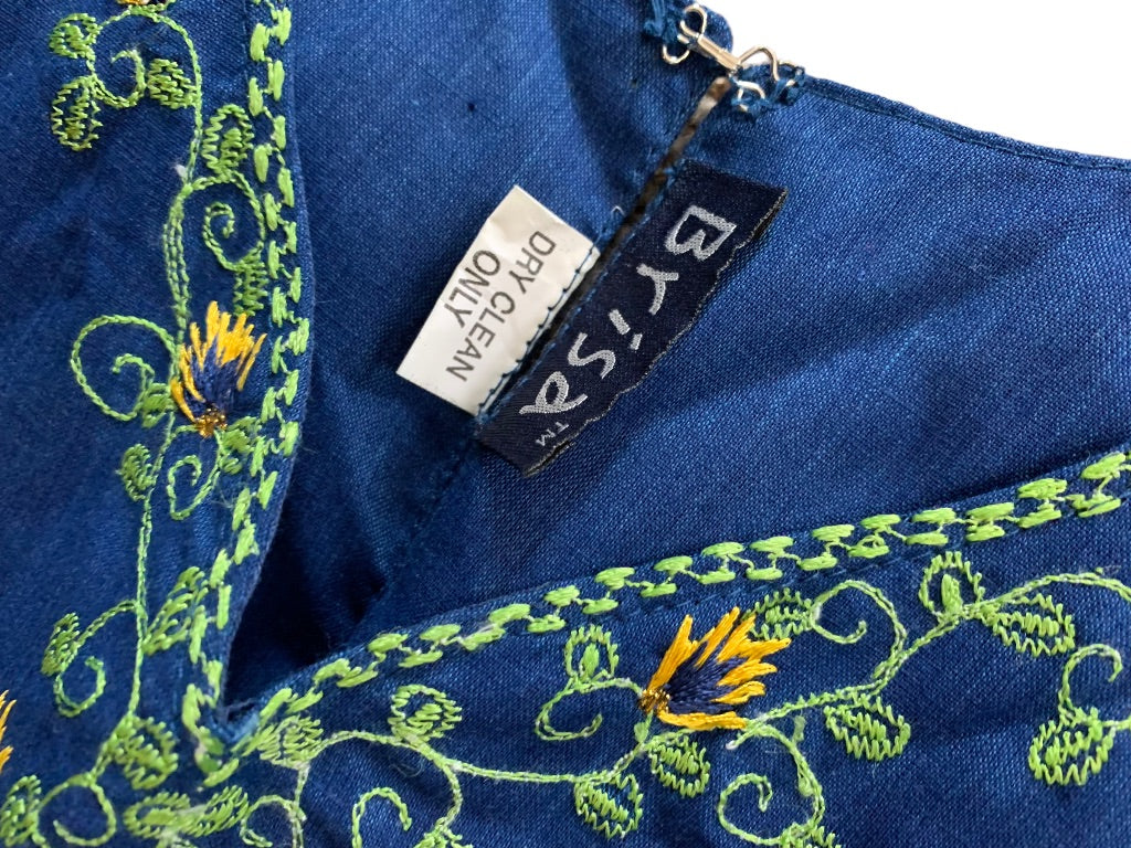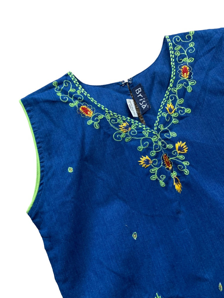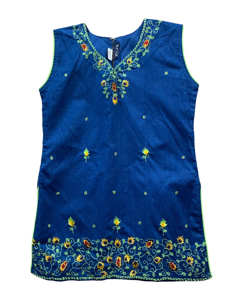 Medium Girls Brisa Blue Indian Style Top Blouse Sleeveless Embroidered Floral