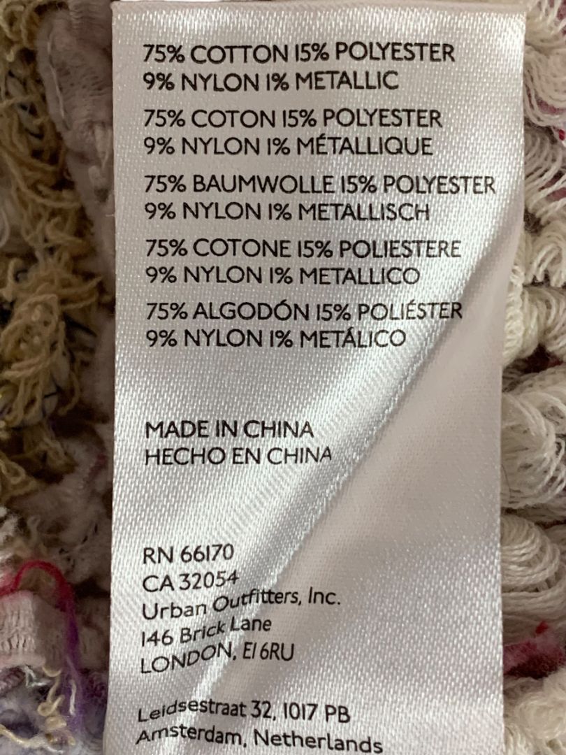 75% cotton 15% polyester 9% nylon 1% metallic