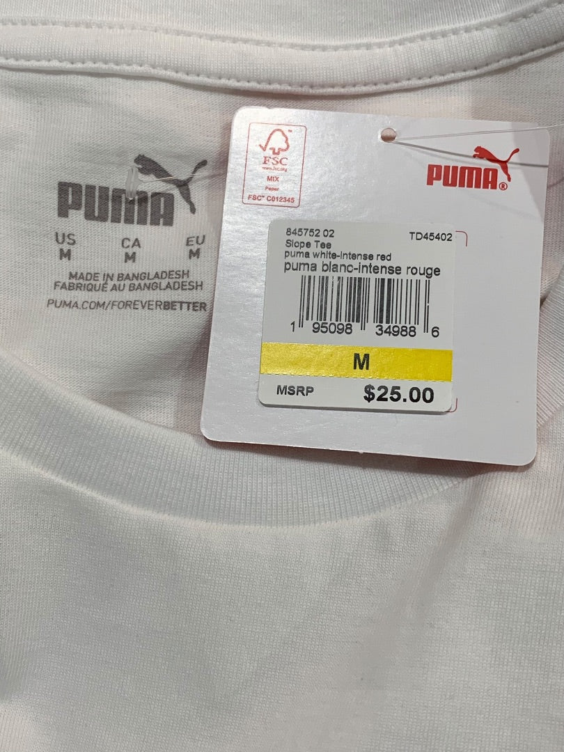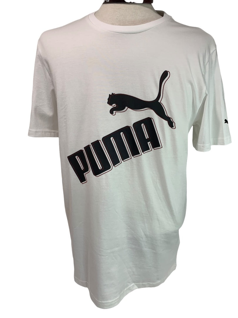 Medium Puma White Tshirt Graphic Logo Mens New Short Sleeve