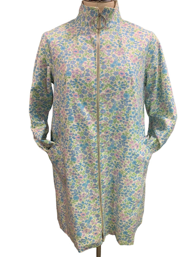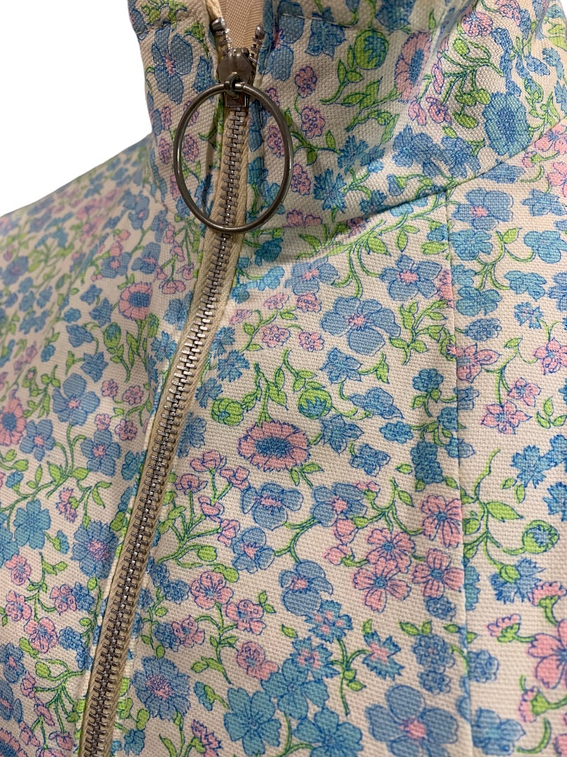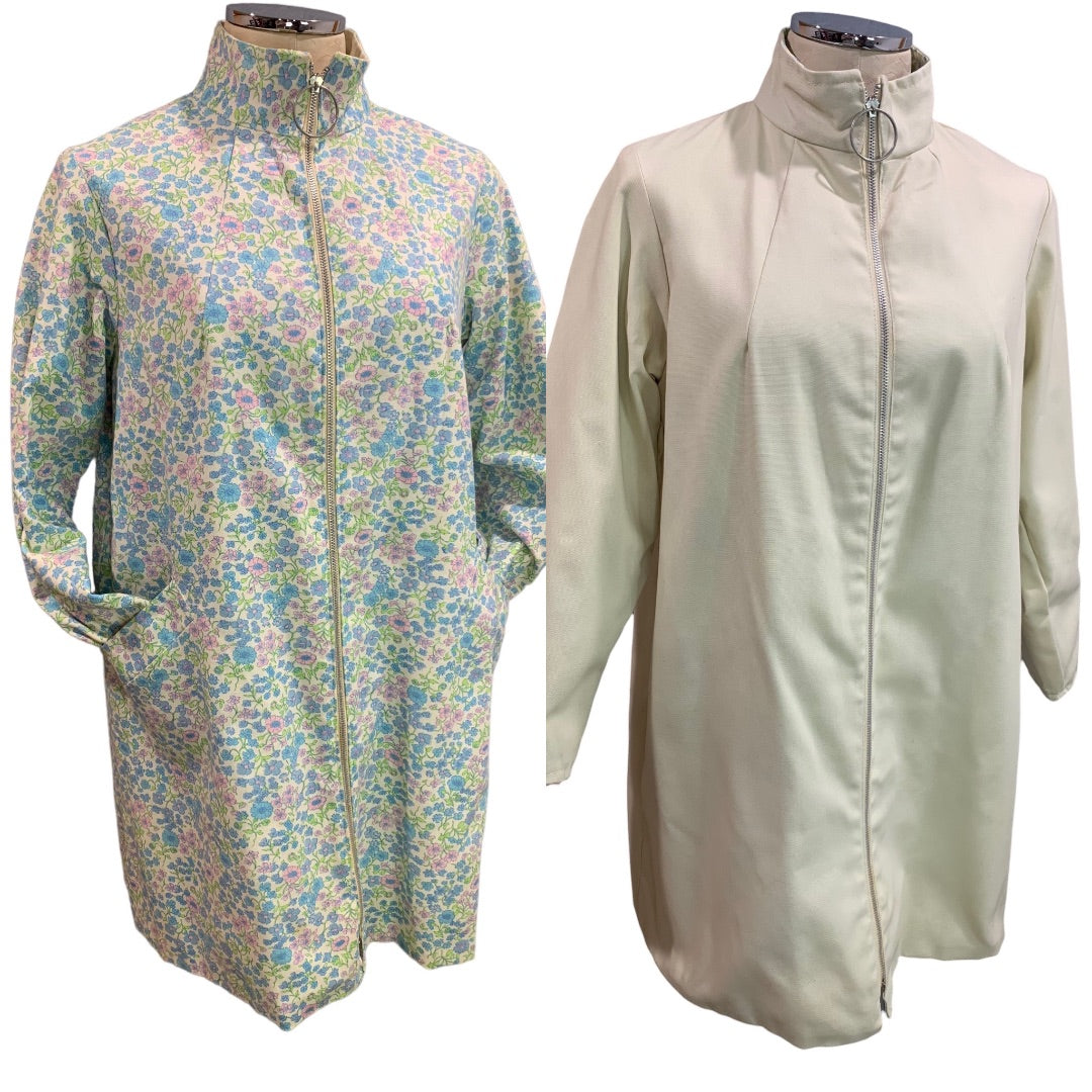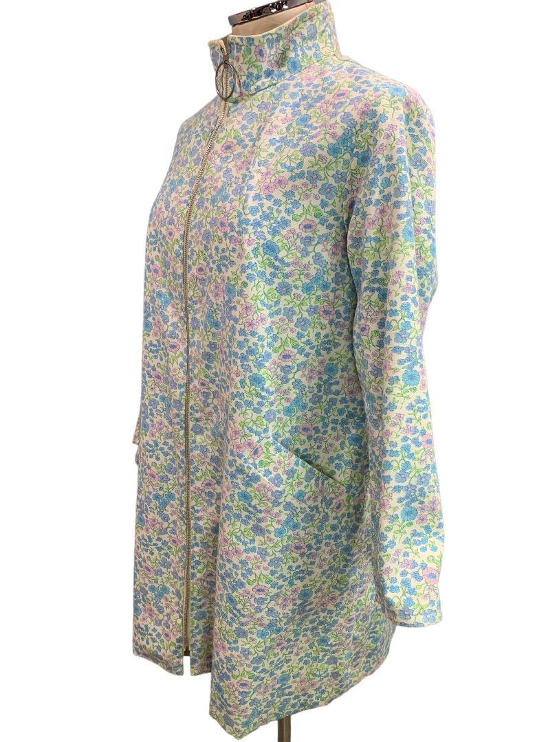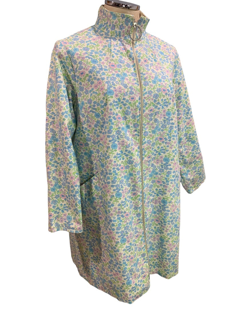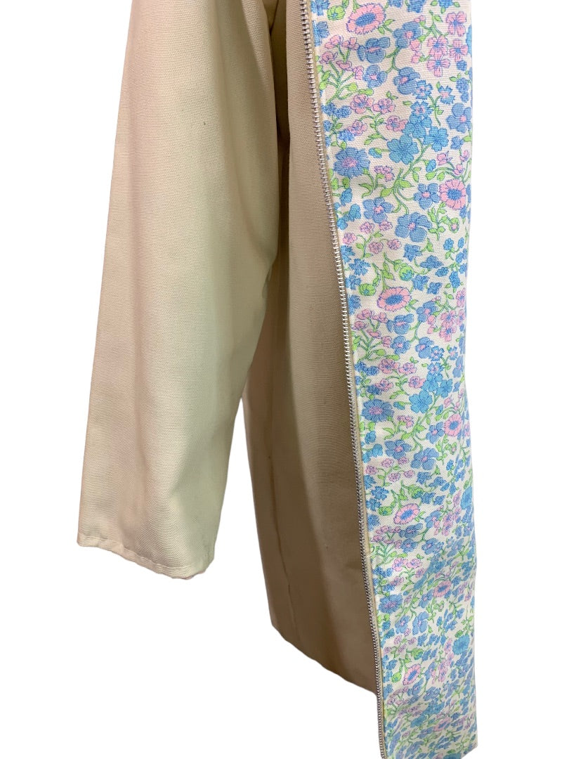 Medium Women's Reversible 1960s O-Ring Overcoat Pastel Flowers
