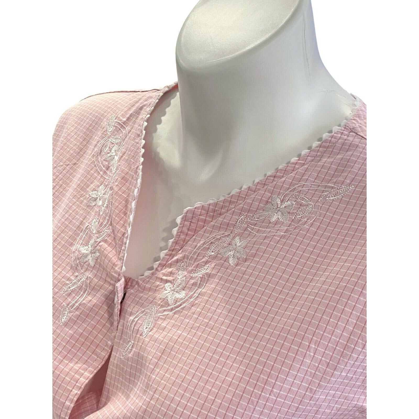 Miss Elaine Size 2X Cotton Check Short Sleeve Snap Front Robe Pink Granny Core