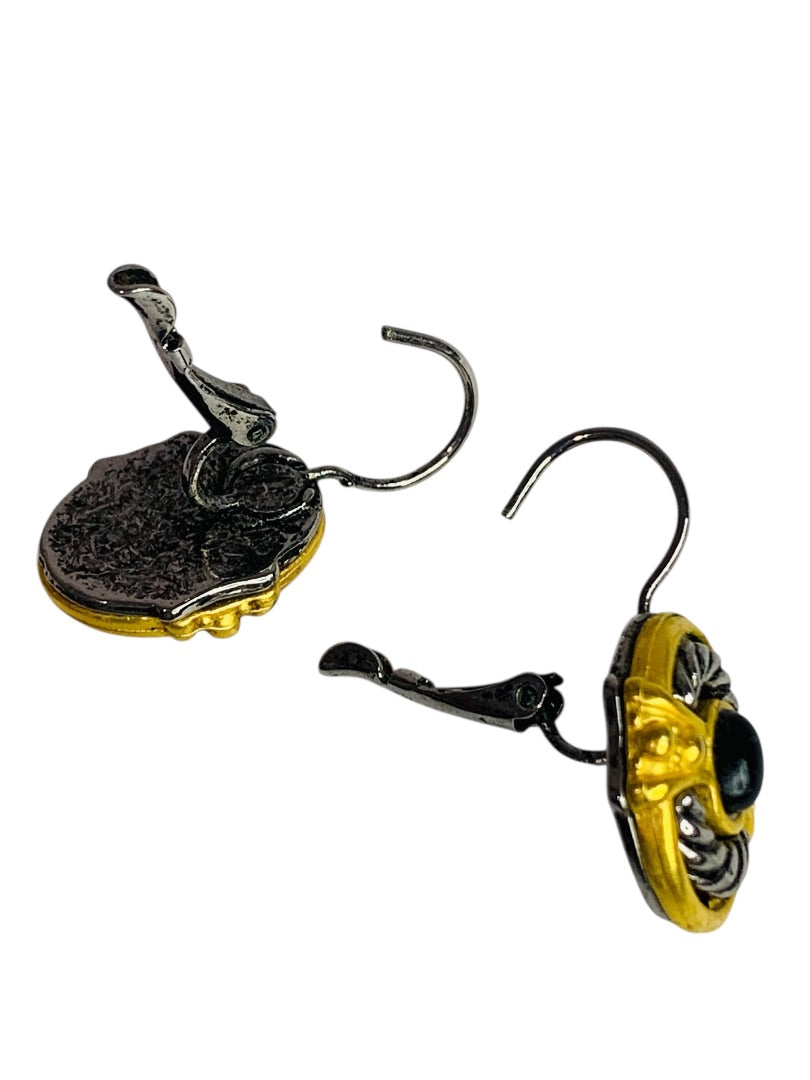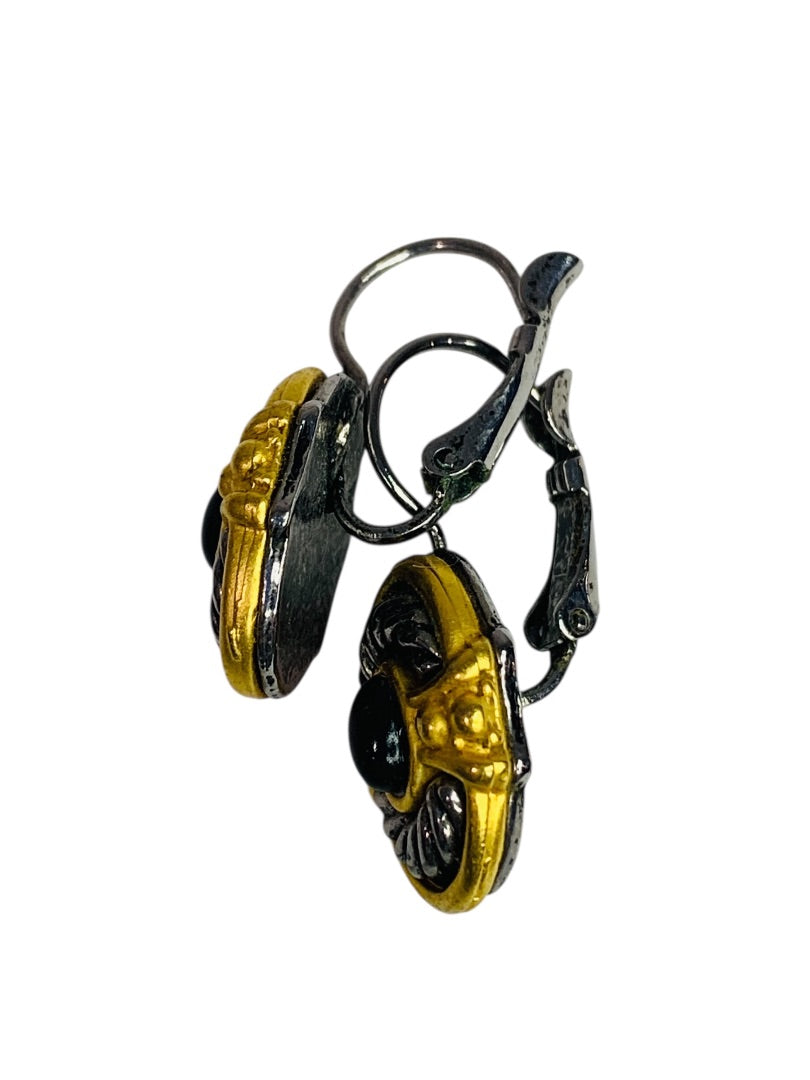 Mixed Metal Goldtone Pewter Leverback Earrings Pierced 1.2 Inch Drop