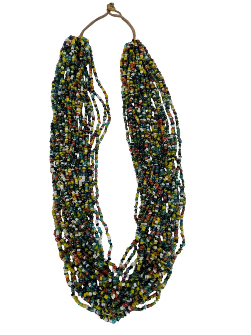 Multistrand Statement Seed Bead Necklace Twish Button Closure 23 Inch