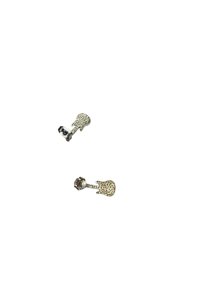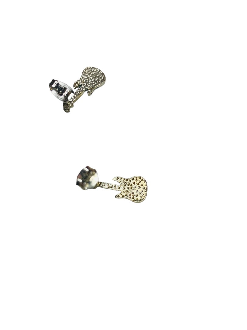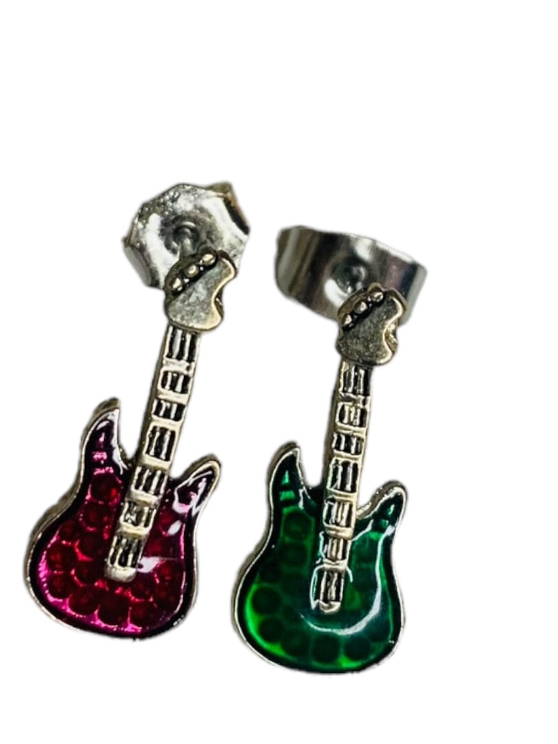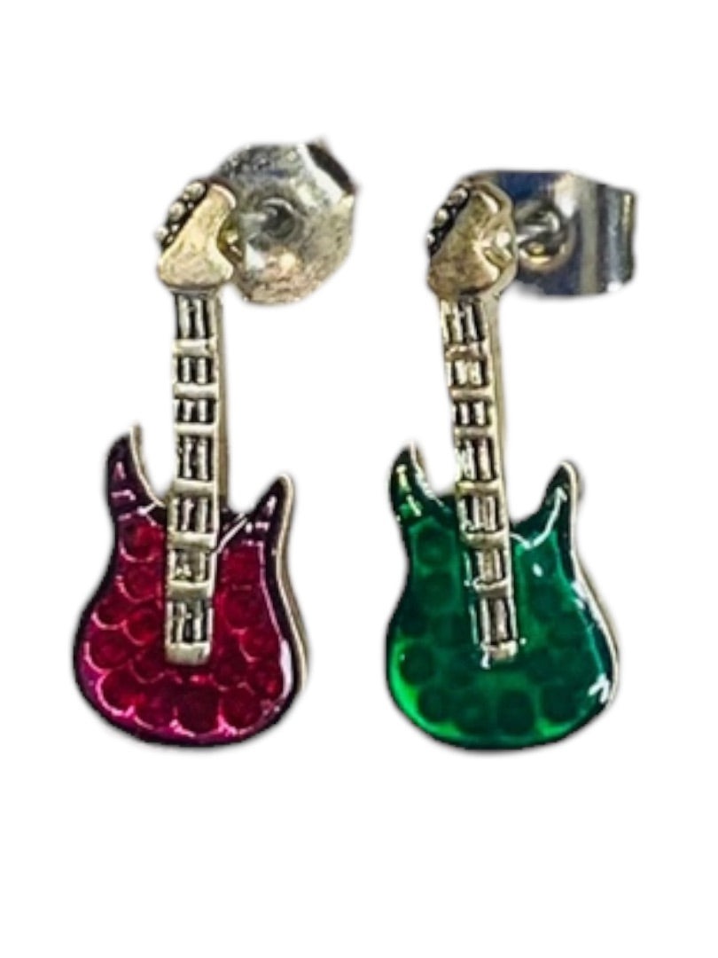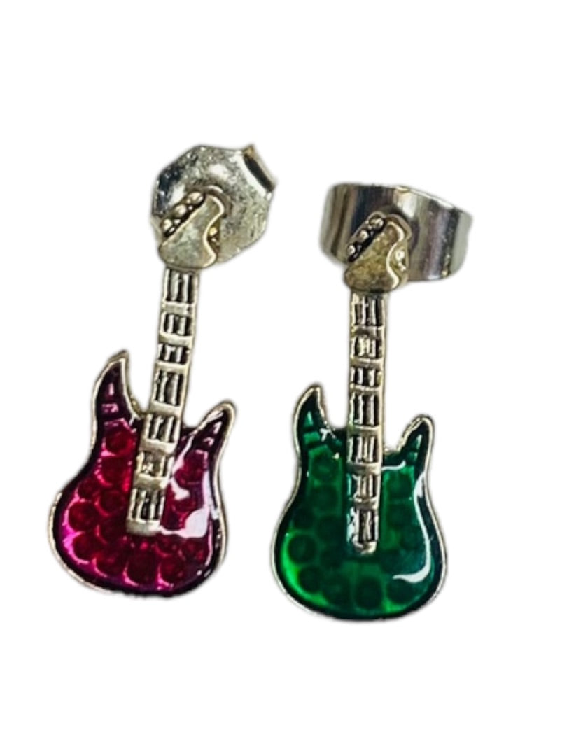 Pierced Post Guitar Earring Silvertone Pink Green Petite .5" Stud