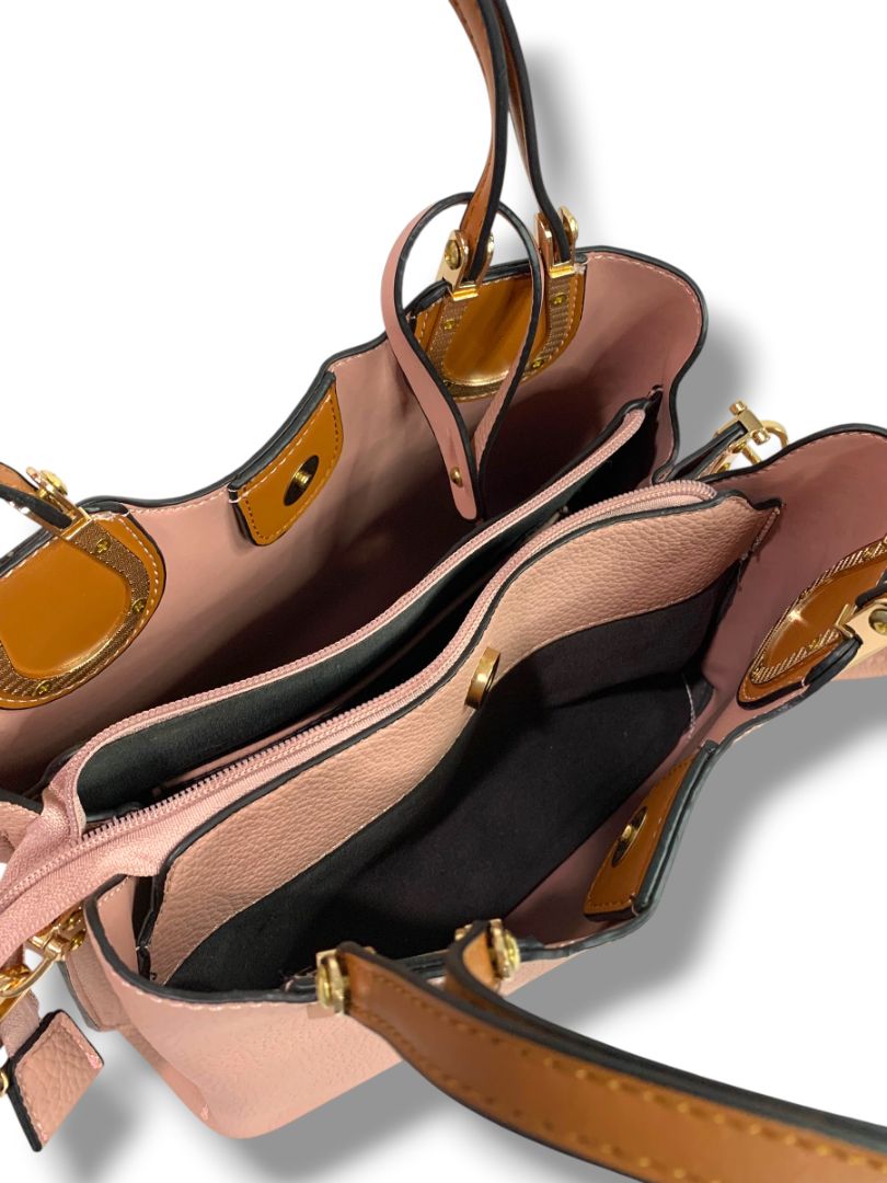 Pink Faux Pebbled Leather Satchel Handbag Removable Crossbody Strap