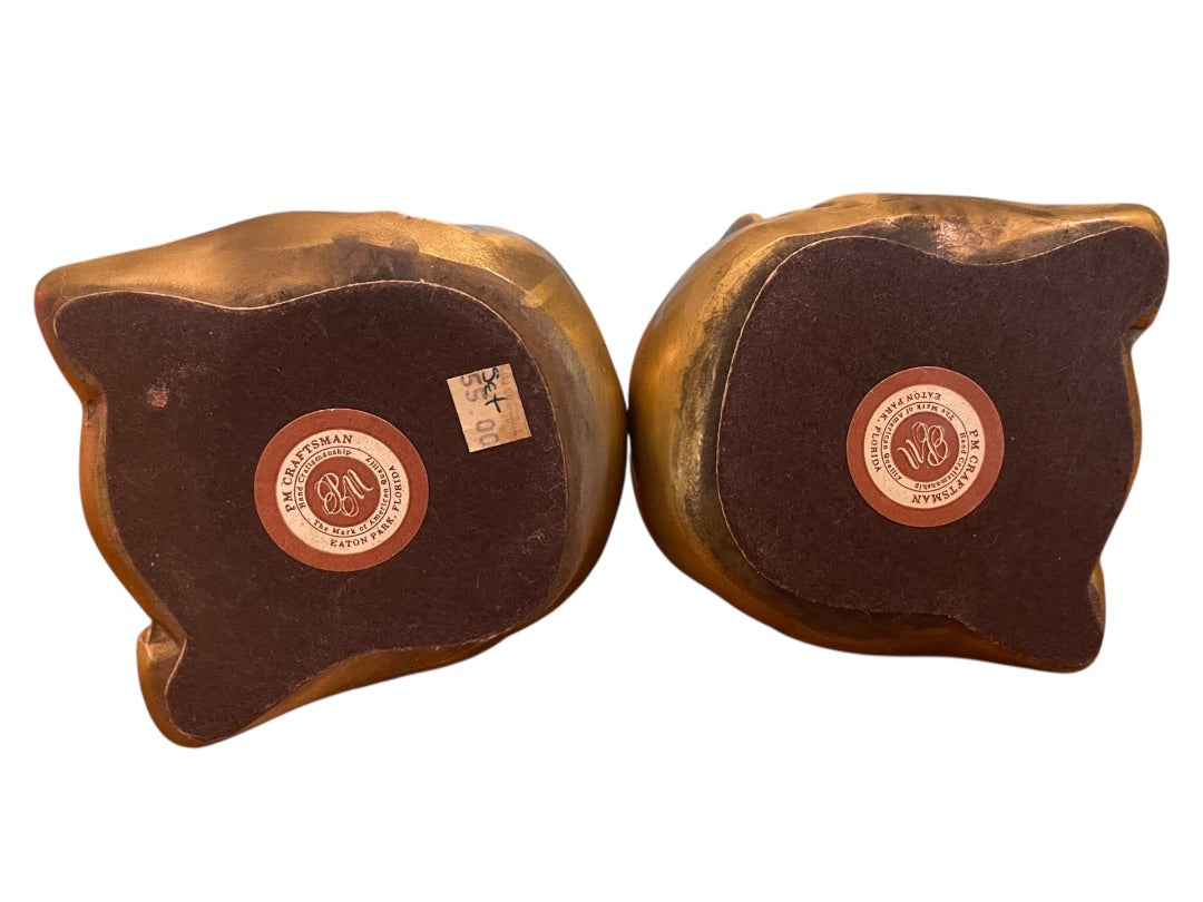 PM Craftsman Trunk Up Elephant Book Ends USA Heavy Goldtone