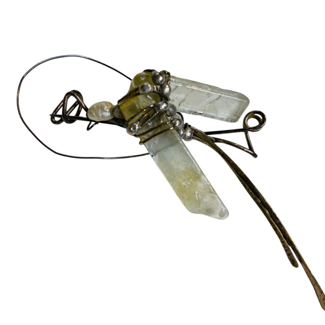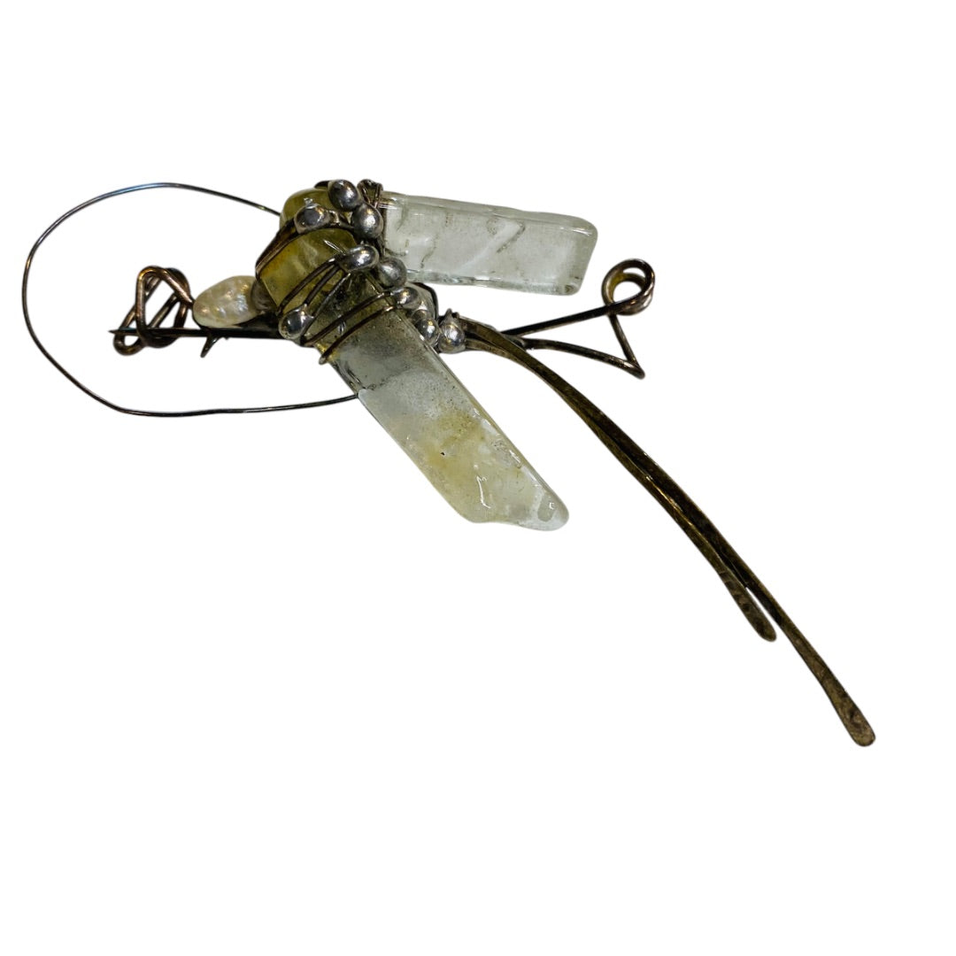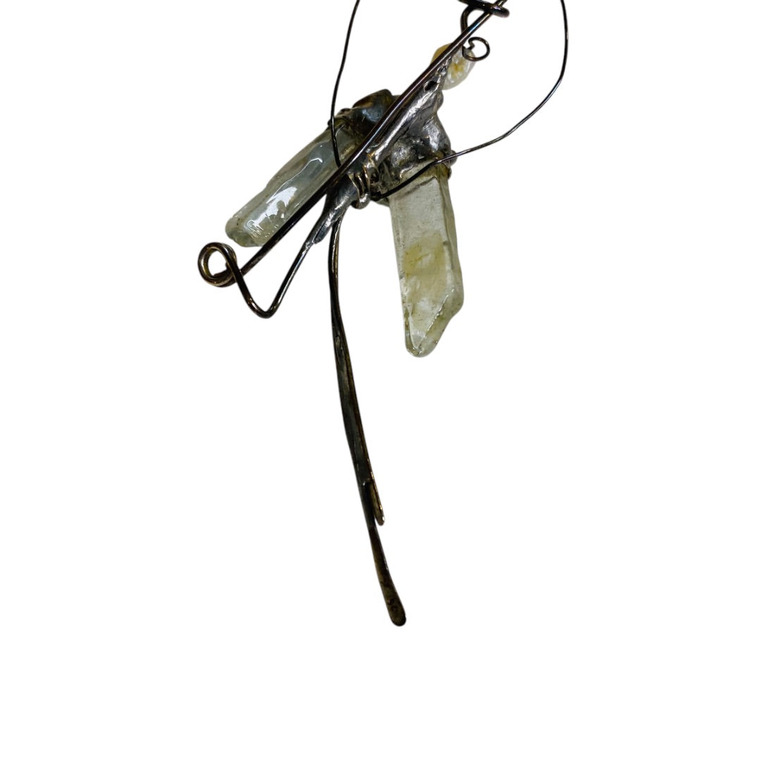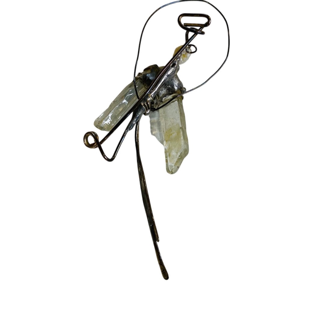 Quartz and Silvertone Handmade Artisan Brooch Pin Wire Wrap