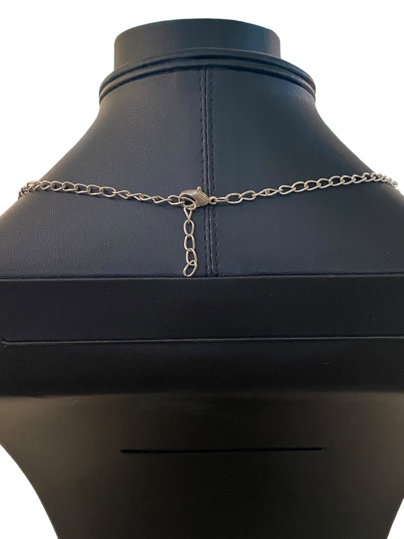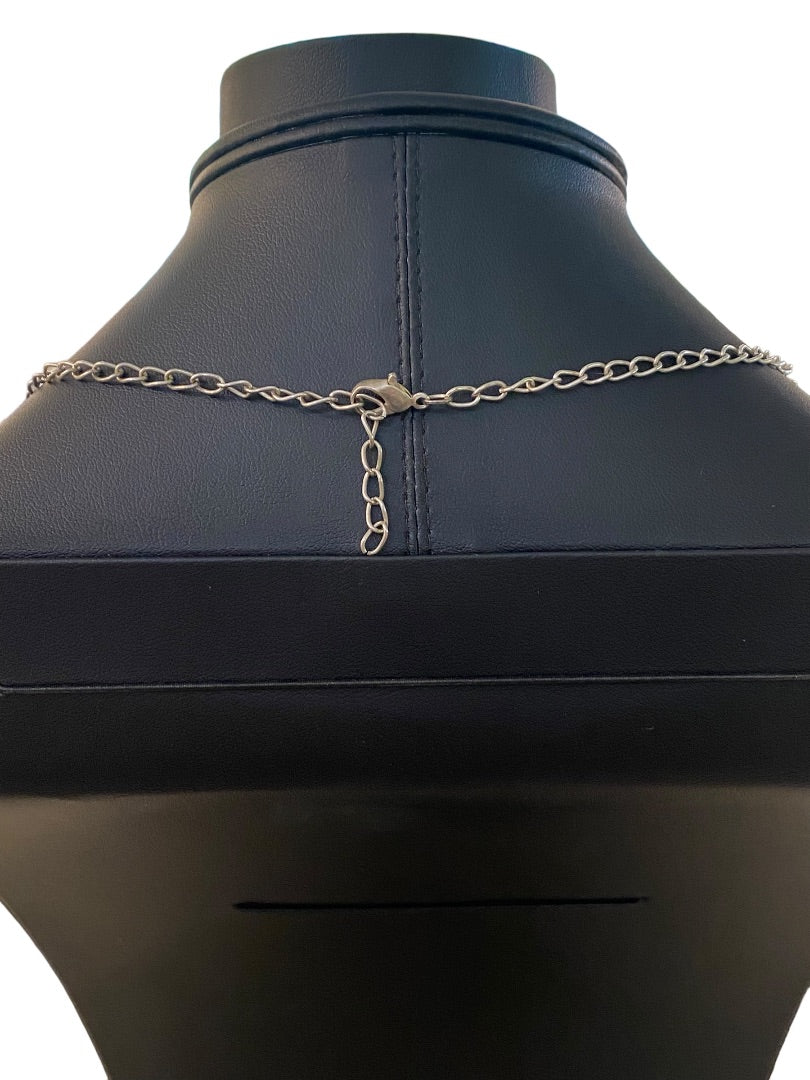Rhinestone Formal Silvertone Necklace 21" Lobster Clasp 2" Drop