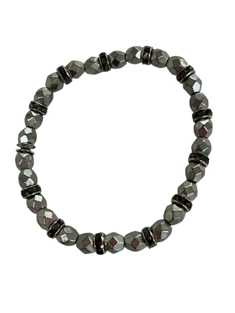 Set of 2 Acrylic Stretch Bracelets Silvertone Teal Sparkly