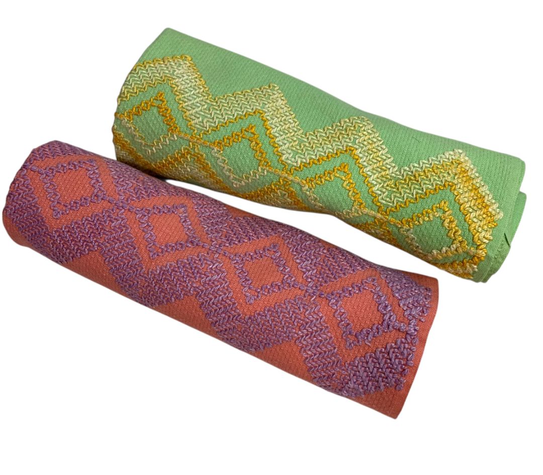 Set of 2 Pink Green Vintage Kitchen Towels Embroidered 23" x 16.5"