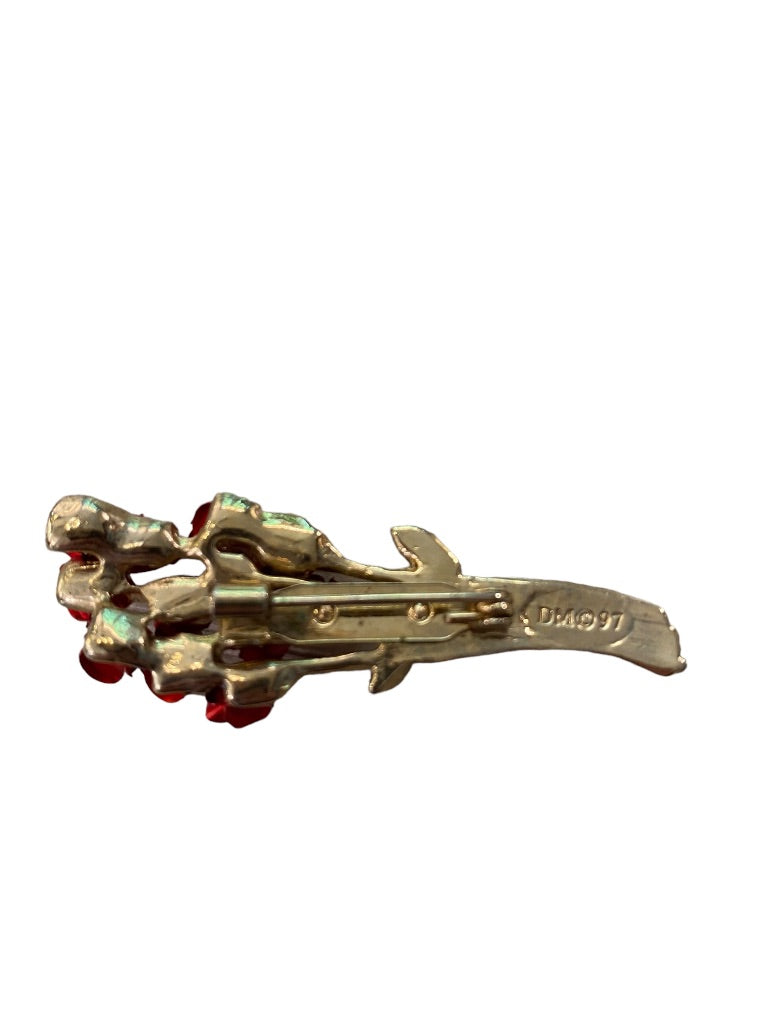 Signed DM Danbury Mint for Avon Brooch Red Goldtone Rose Bouquet 2.25" 1997
