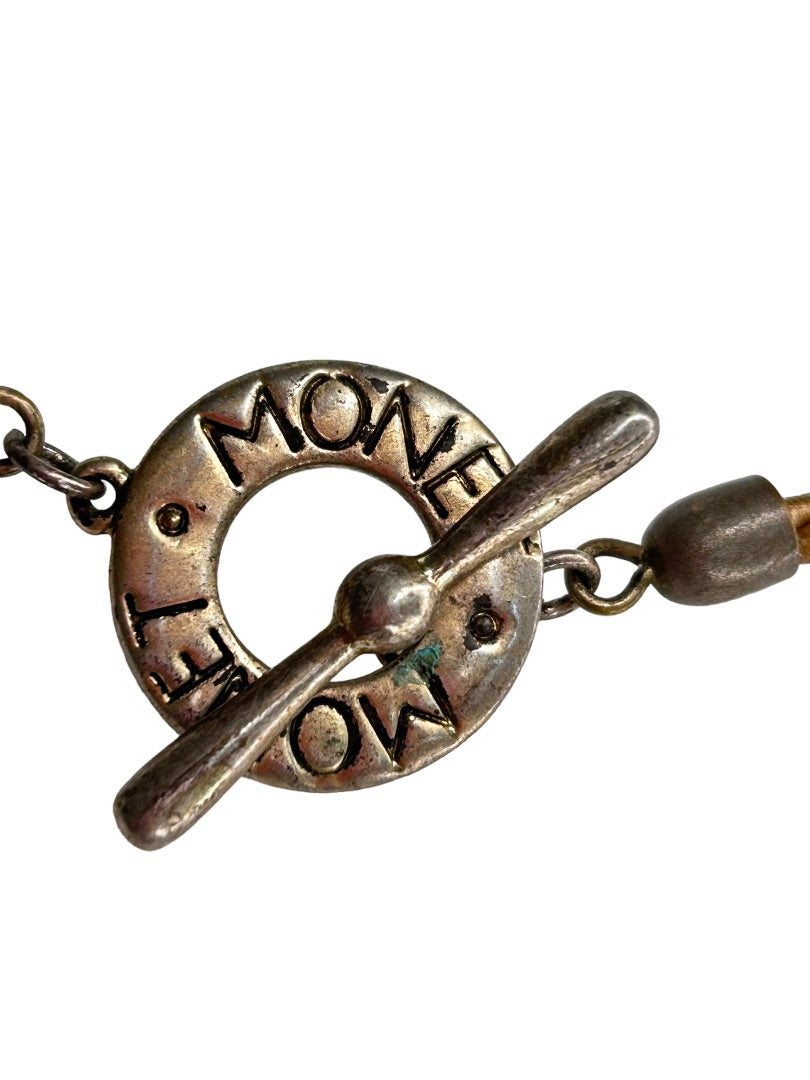 Signed Monet Green Bead on Silk 23" Statement Necklace Toggle Clasp