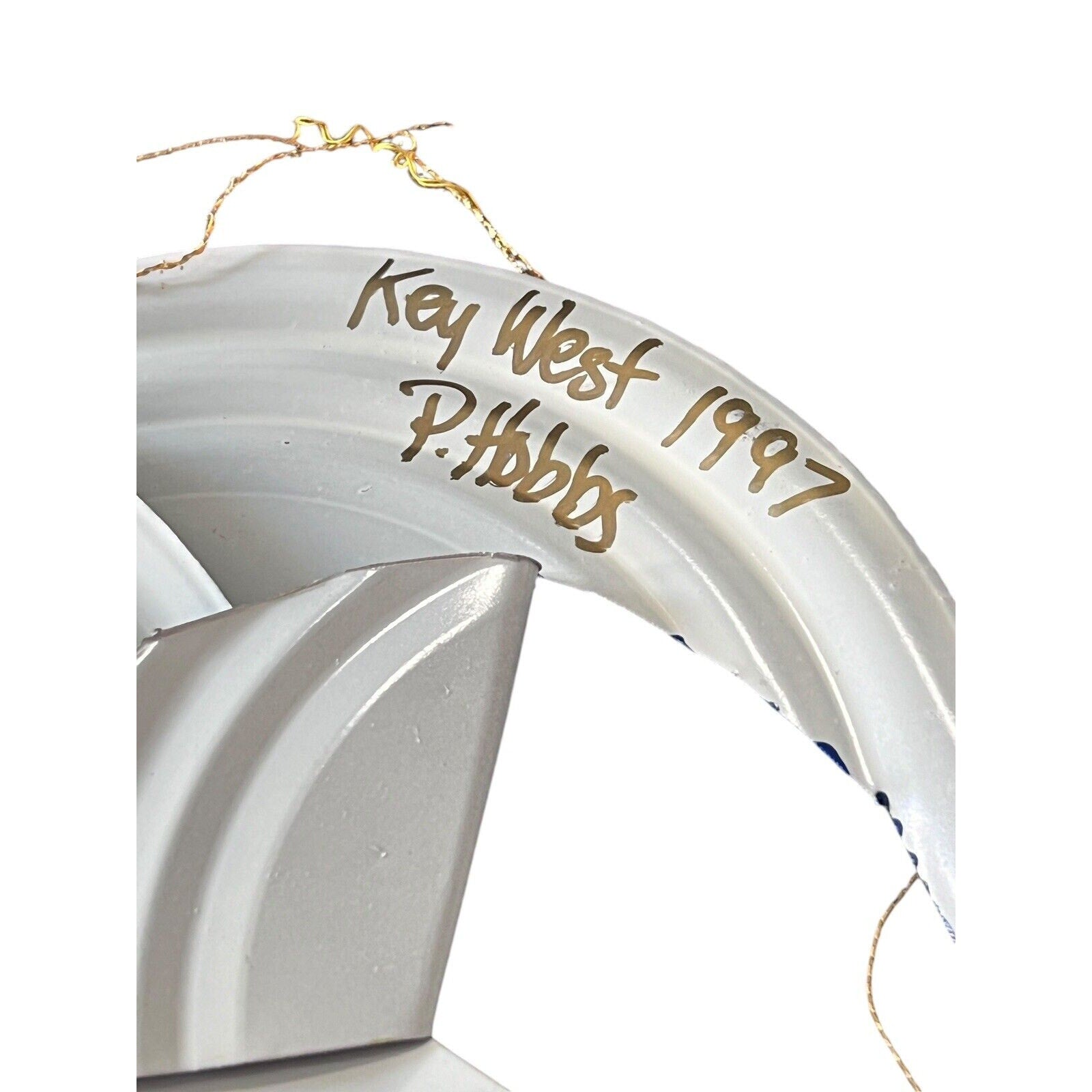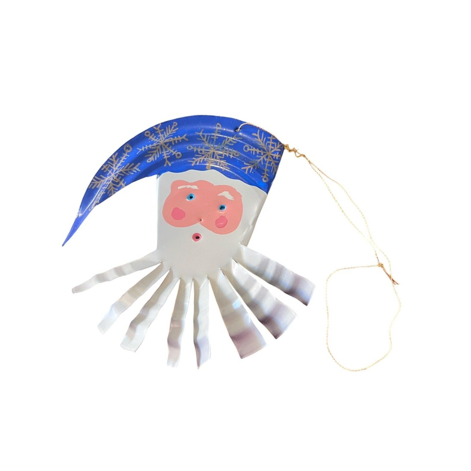 Signed Santa Claus Christmas Ornament Holiday Craft Hand Painted Up Cycled Can