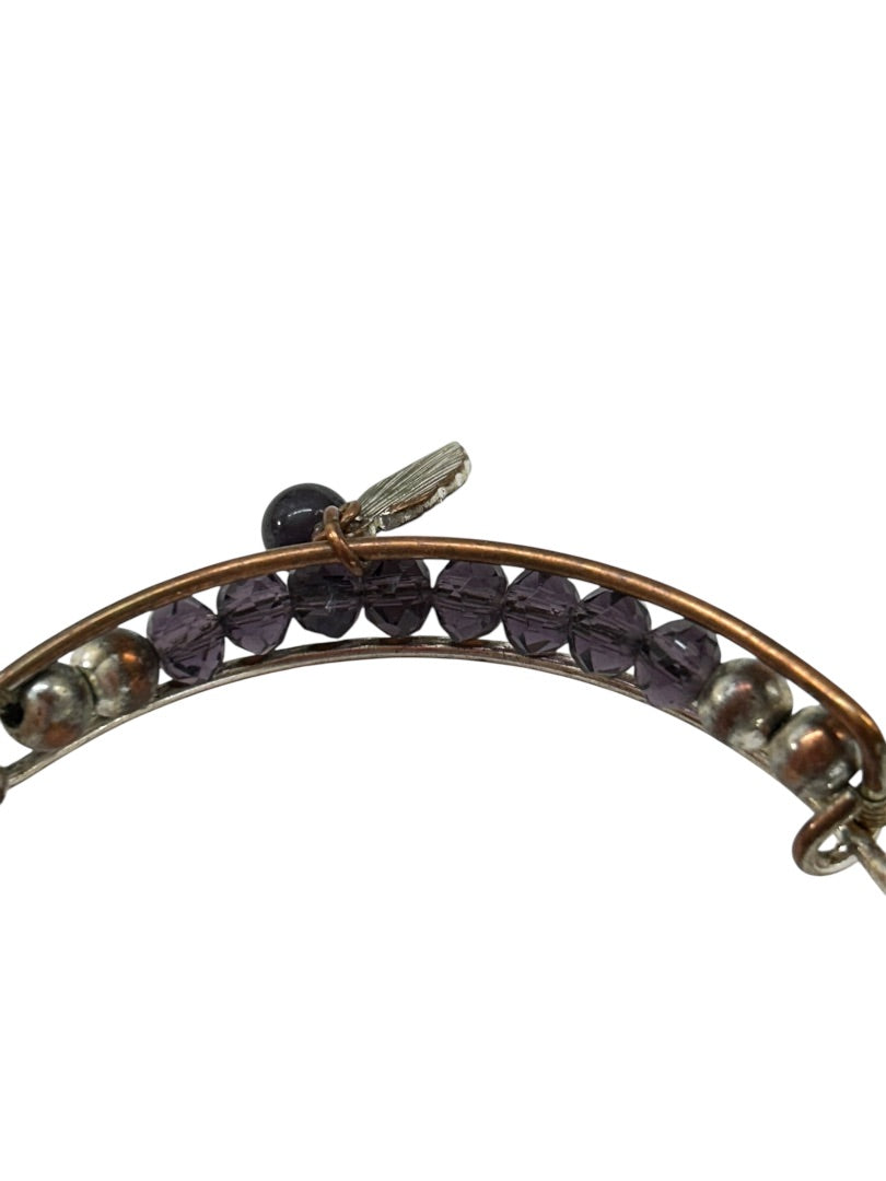 Silvertone Adjustable Bangle Bracelet Purple Crystal Angel Wing