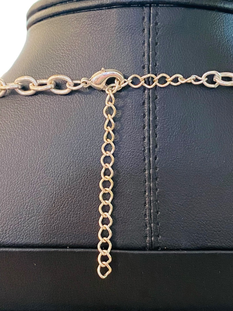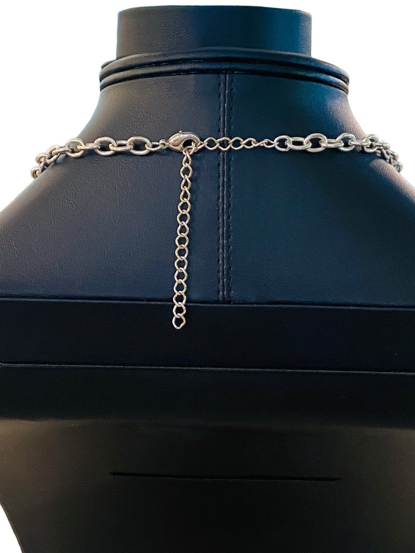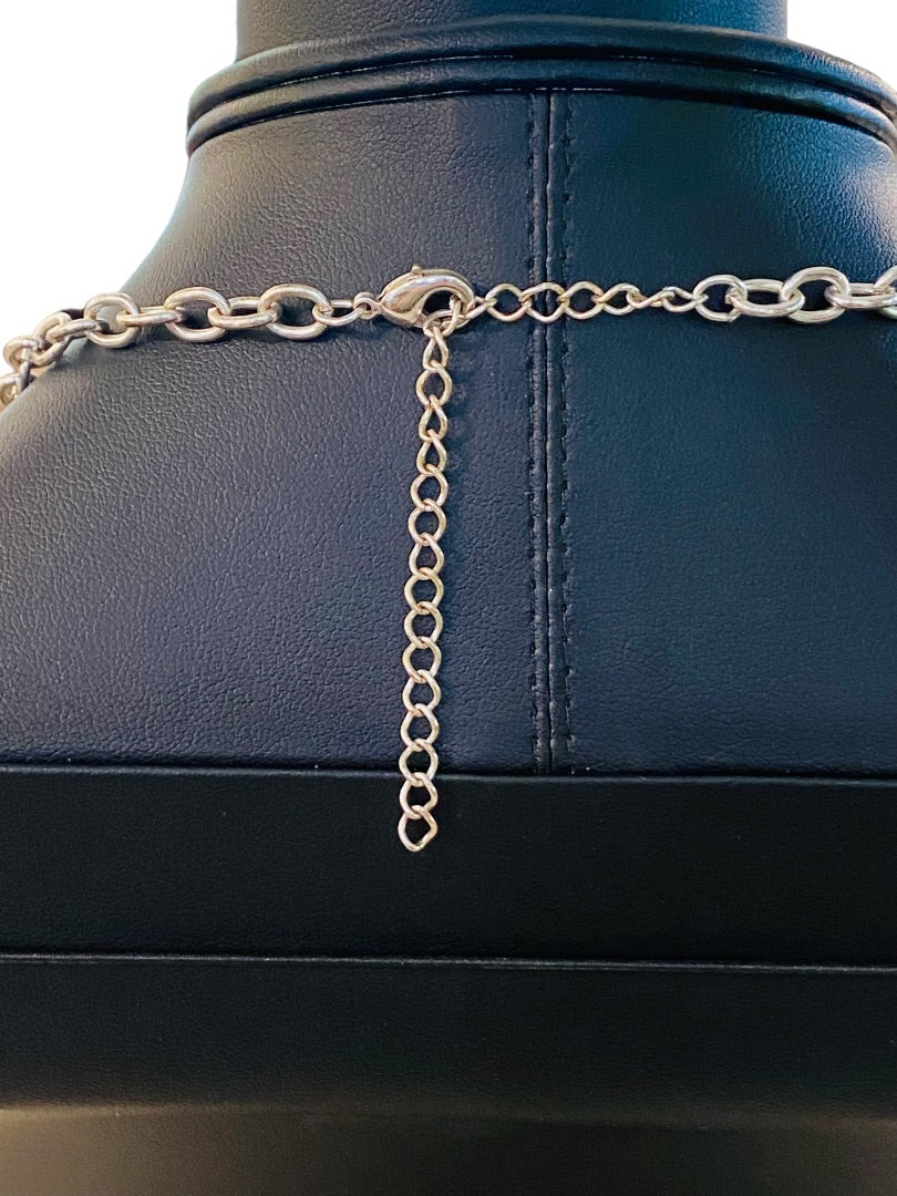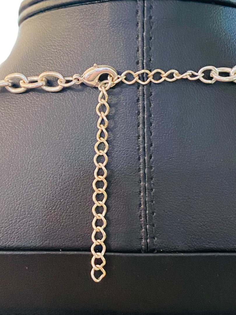 Silvertone and Aqua Charm Layered Circle Necklace 16-19" Lobster Clasp