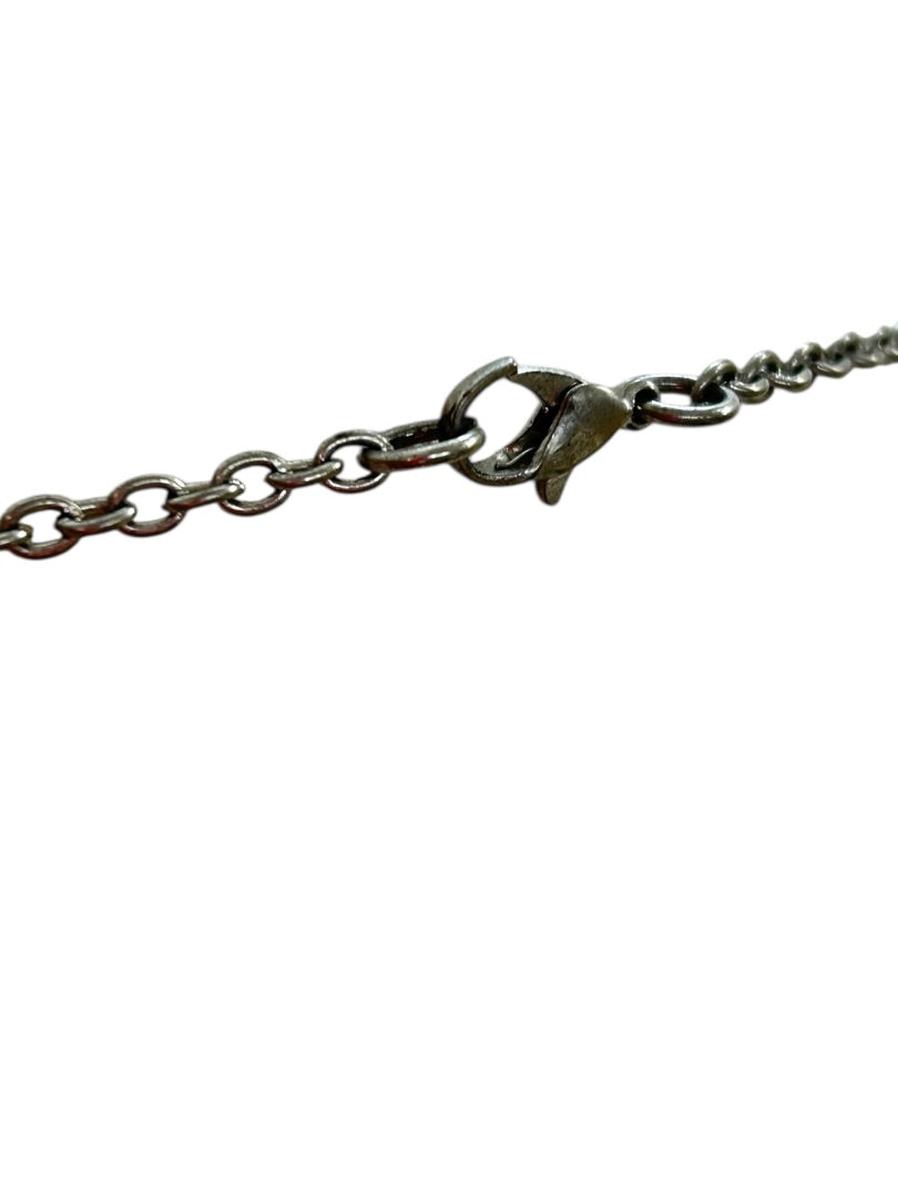 Silvertone Beaded Necklace 34 Inch 5 Inch Drop Cream Beads