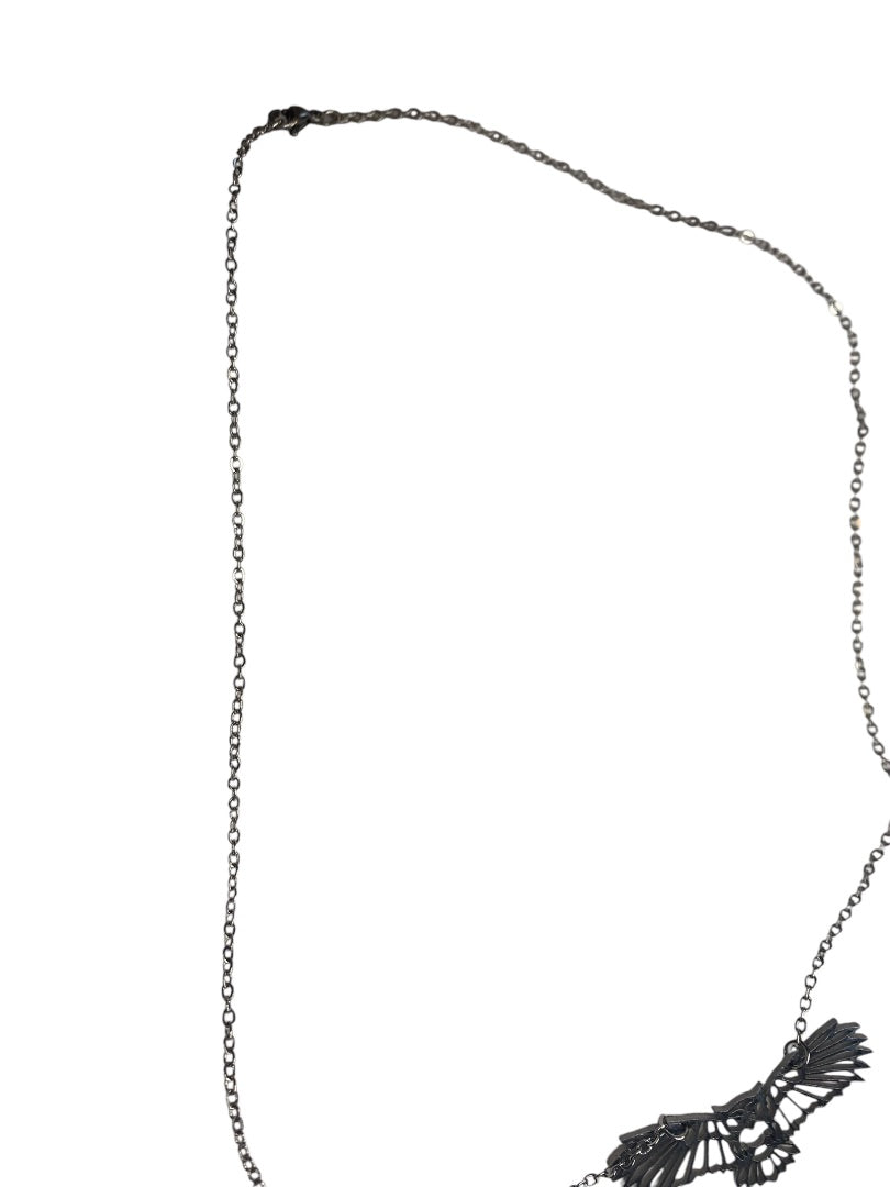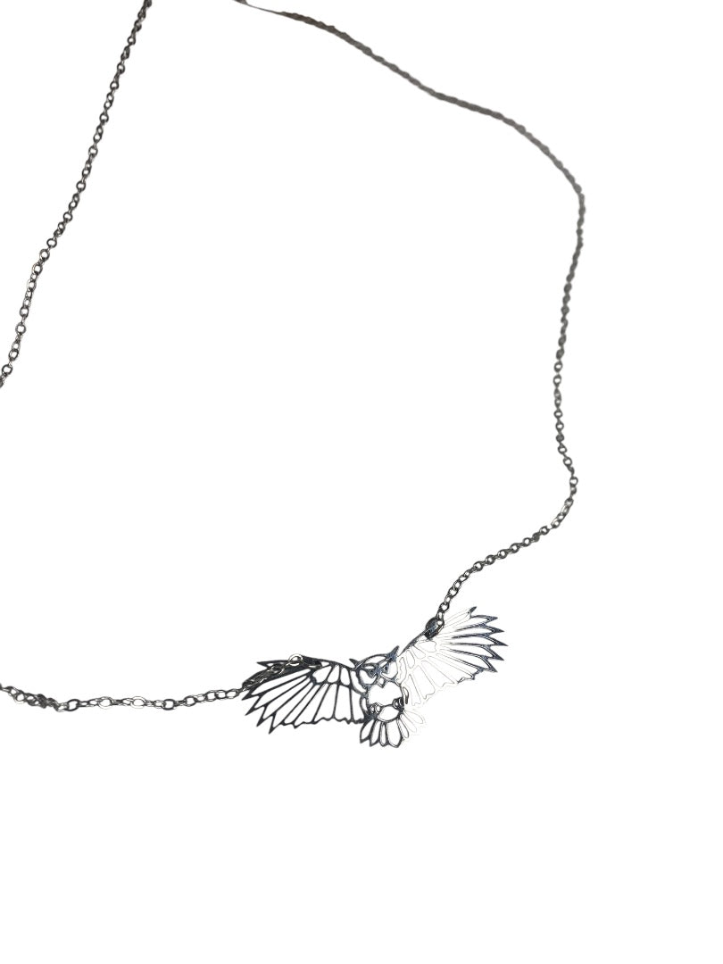 Silvertone Flying Owl Pendant Lasercut 18 Inch