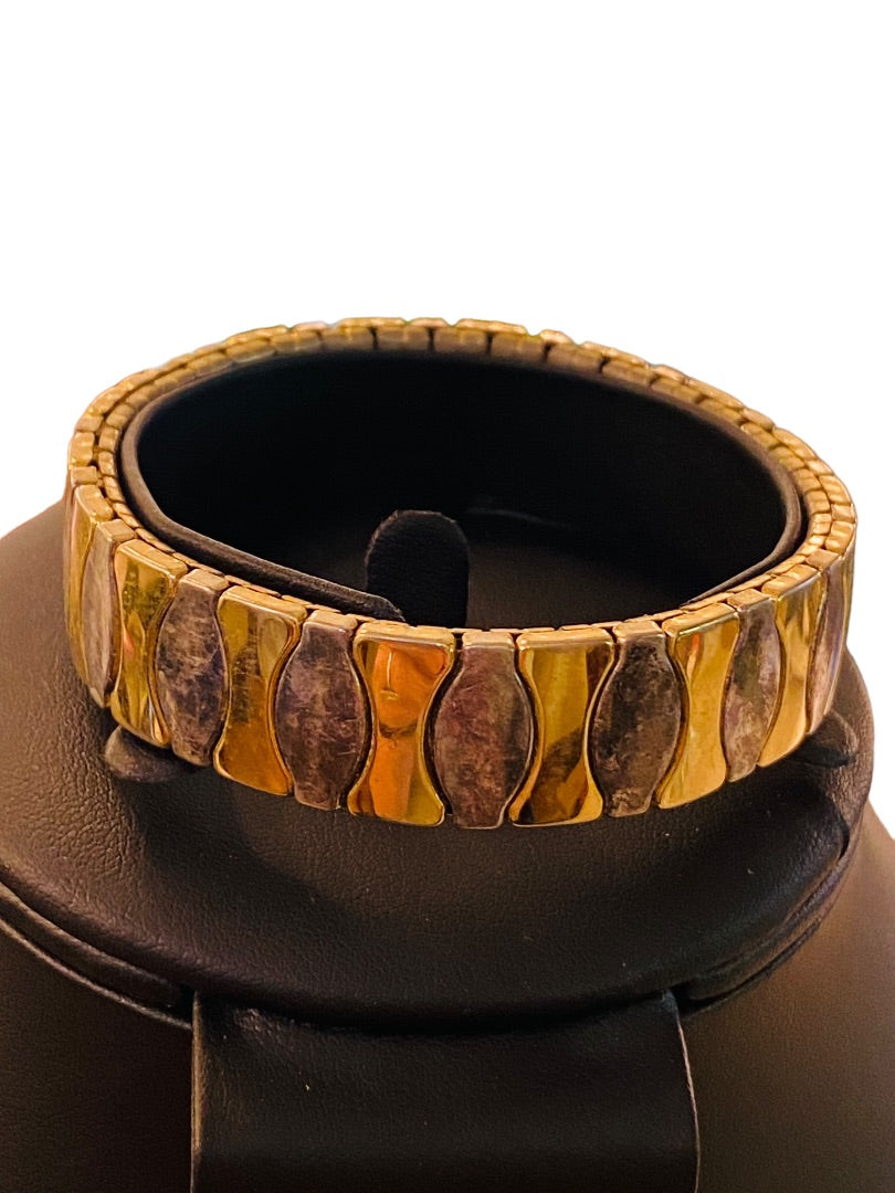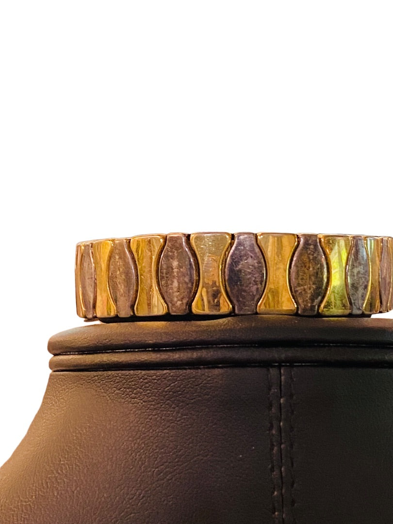 Silvertone Goldtone Stretch Bracelet Stainless Steel Oval Hourglass Design