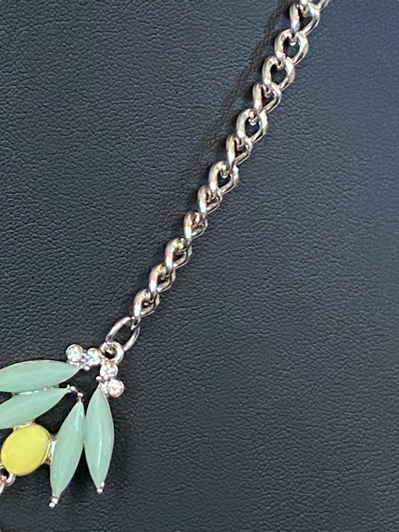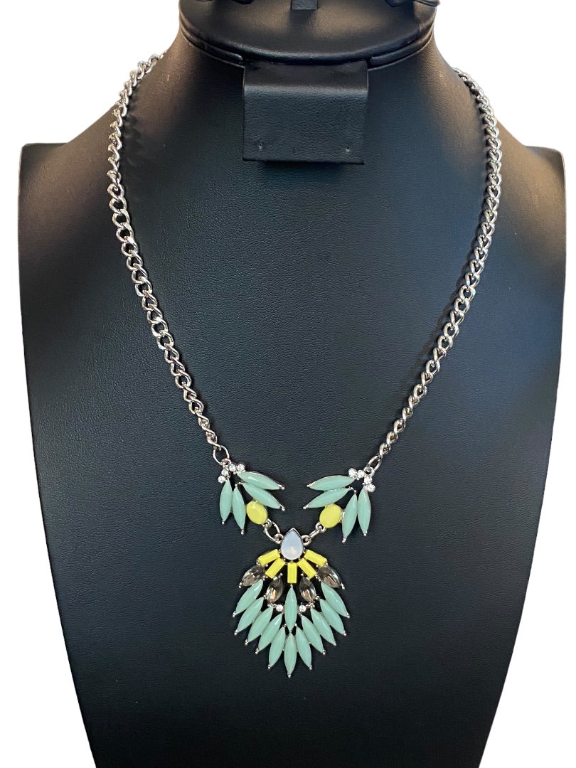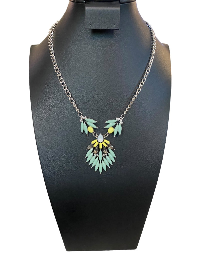 Silvertone Green Yellow 18-19" Statement Necklace Beaded Green Yellow