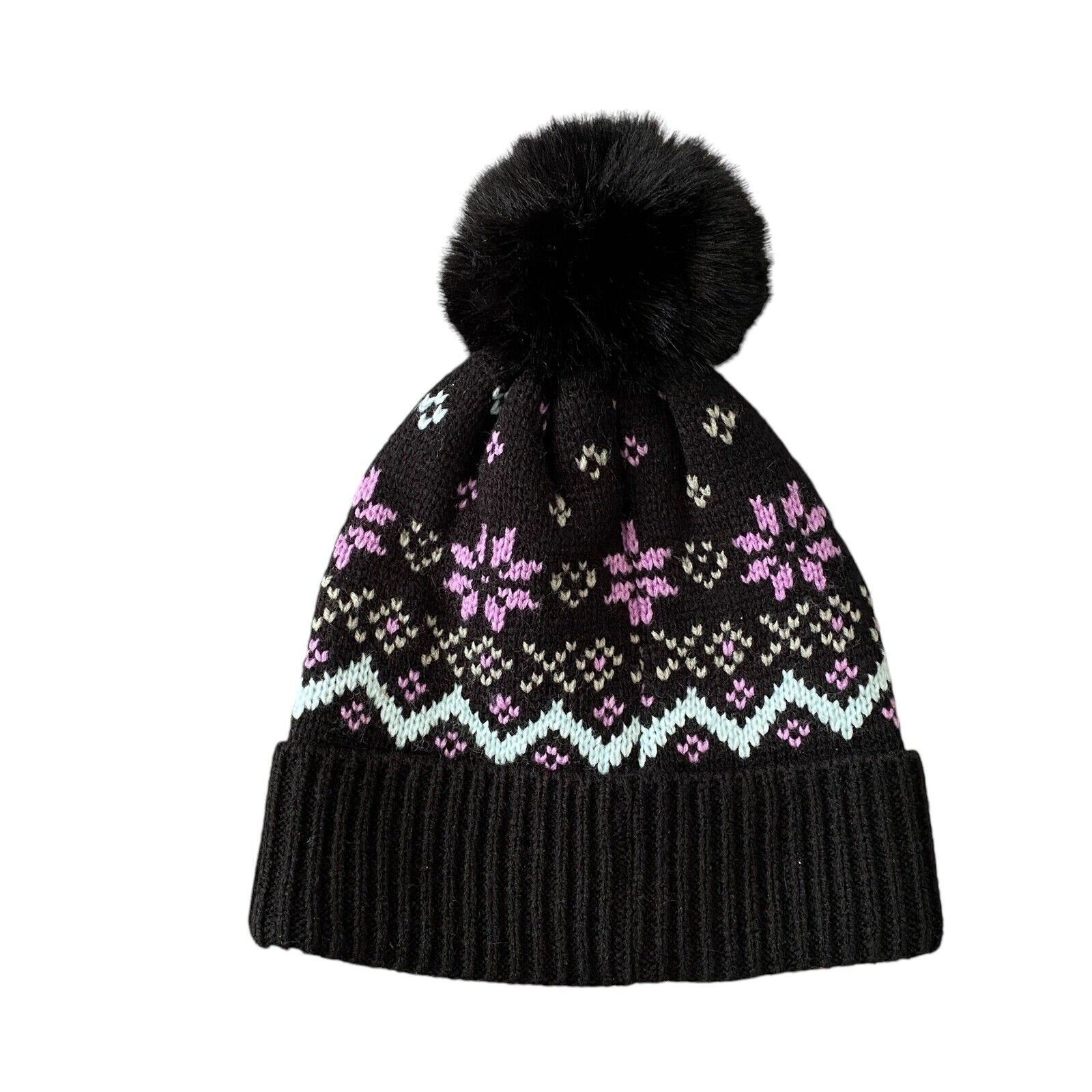 Simply Southern Black Purple Beanie Puff Acrylic Fashionable Winter Hat Knit Ski