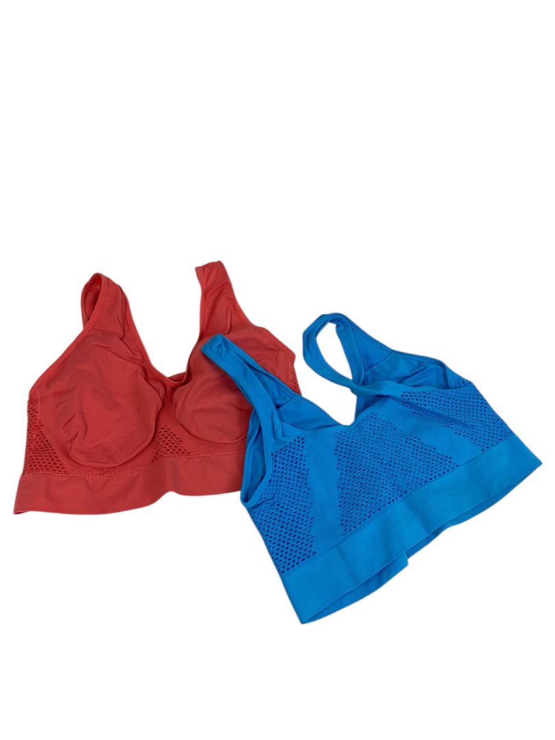Size 1XL Set of 2 Womens Light Support Sports Bras Blue Salmon