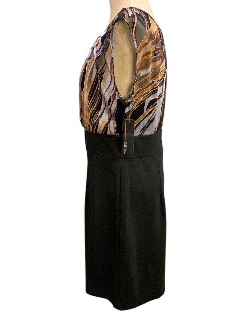 Size 14 AGB Dress New Black Skirt Metallic Color Sheer Bodice Lined