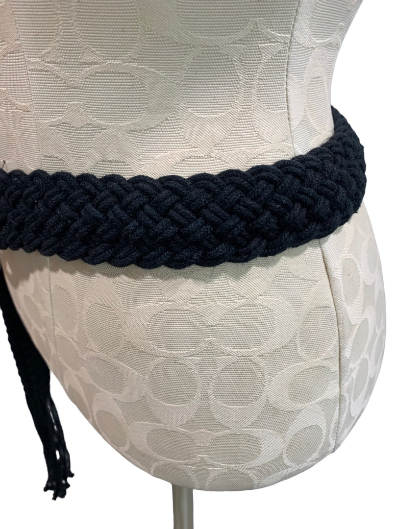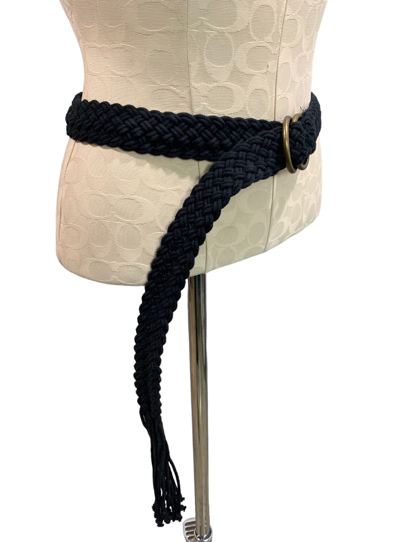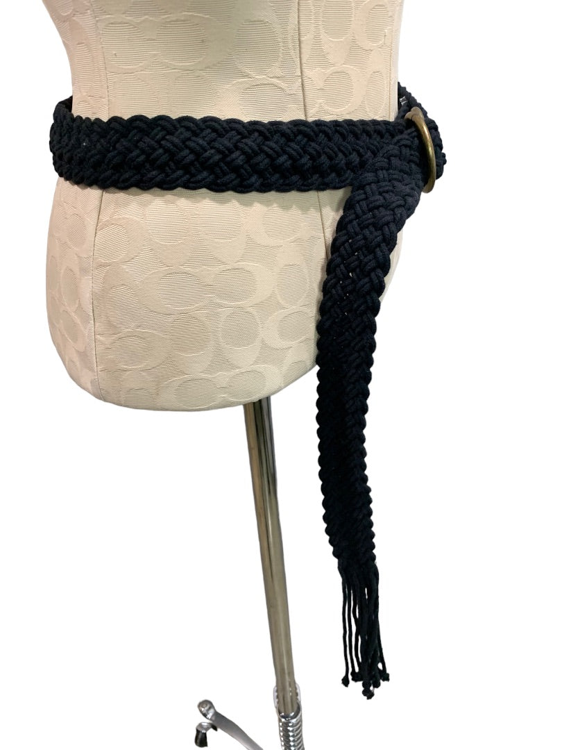 Size 14P Petite Women's Vintage Black Woven Belt Adjustable O-Ring to 44"