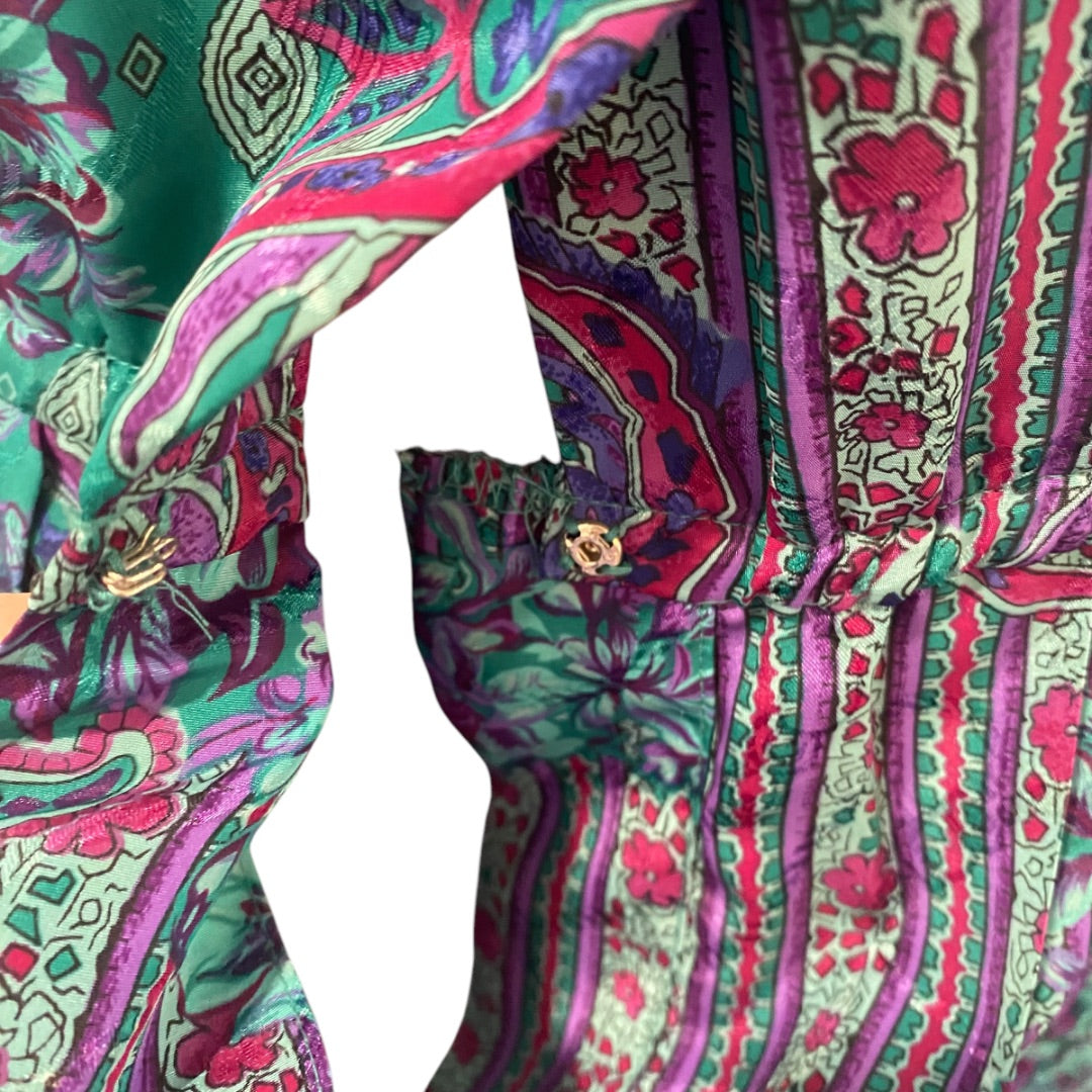 Size 14 Schrader Womens 1980s Polyester Dress Shoulder Pads Pleated Green Purple