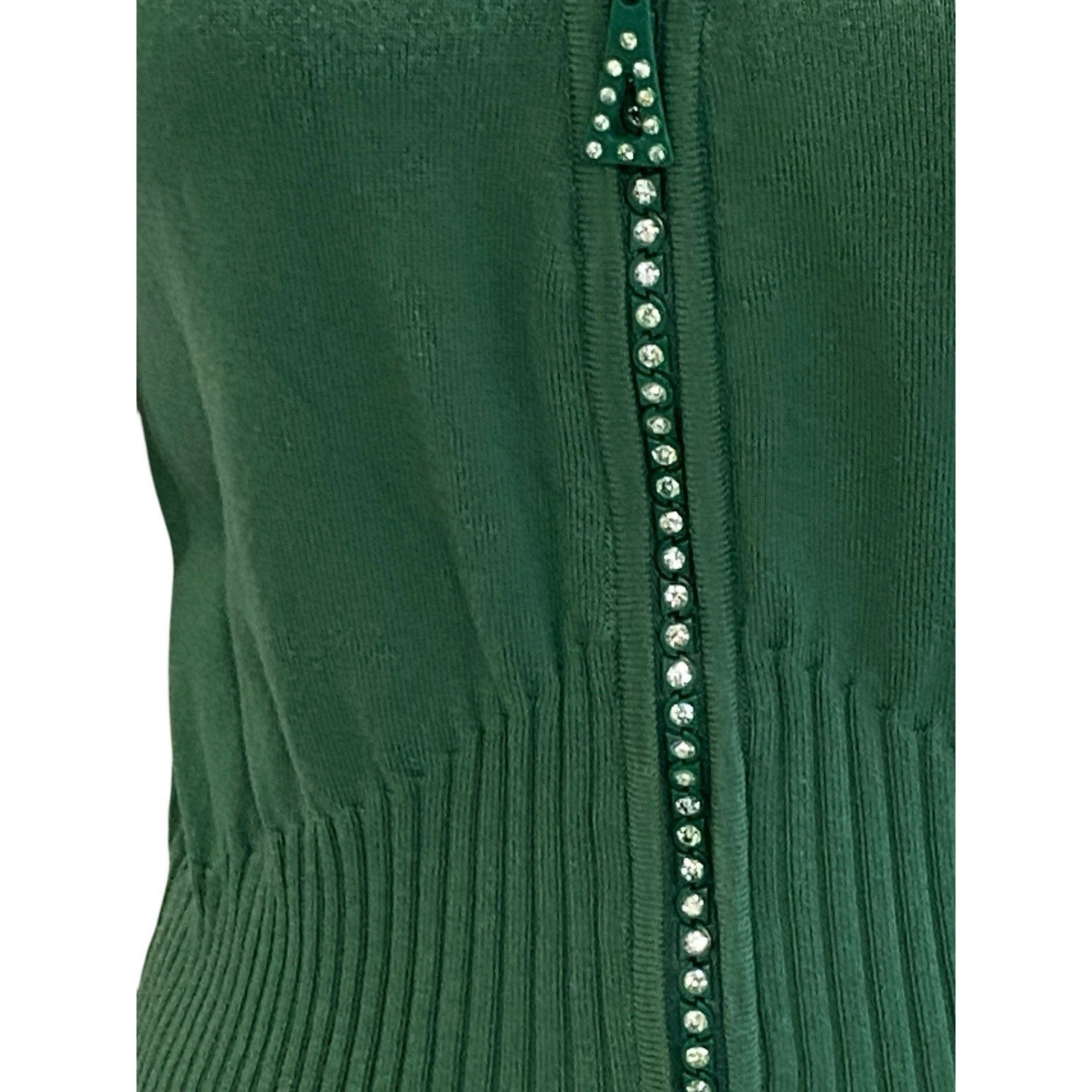 Size 2 Green ABC Fashion 3/4 Sleeve Sweater Rhinestone Bling Zipper Preppy Sassy