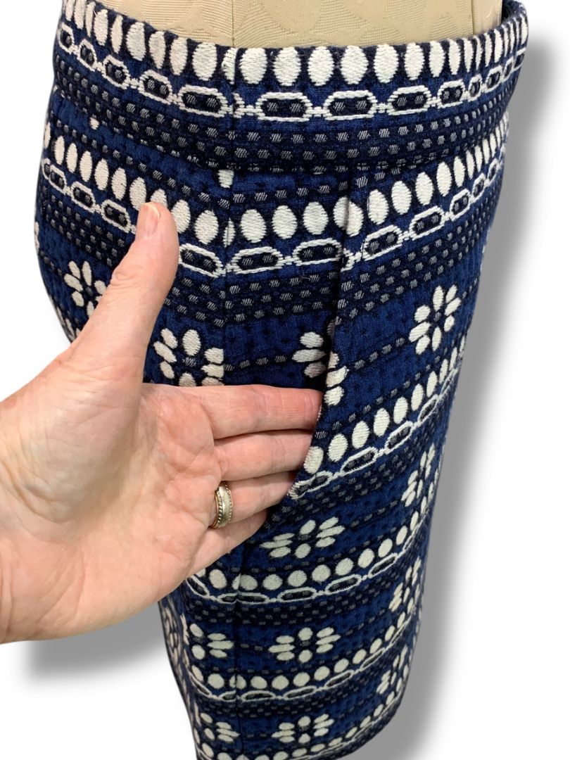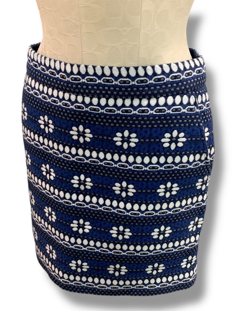 Size 2 J.Crew Floral Jacquard Mini Skirt Navy Blue Pockets 07835
