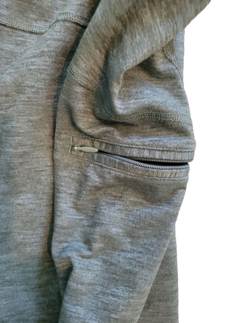 These are worn and washed. The fabric is still very stretchy but does "catch" on itself. (meaning the fabric sticks to itself when folded)