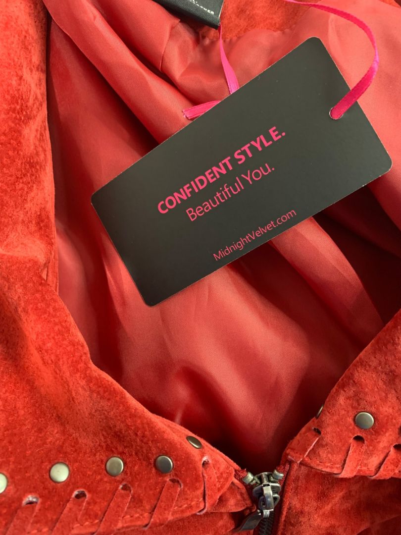 Size 3X Midnight Velvet Womens Red Suede Western Jacket Fringe New