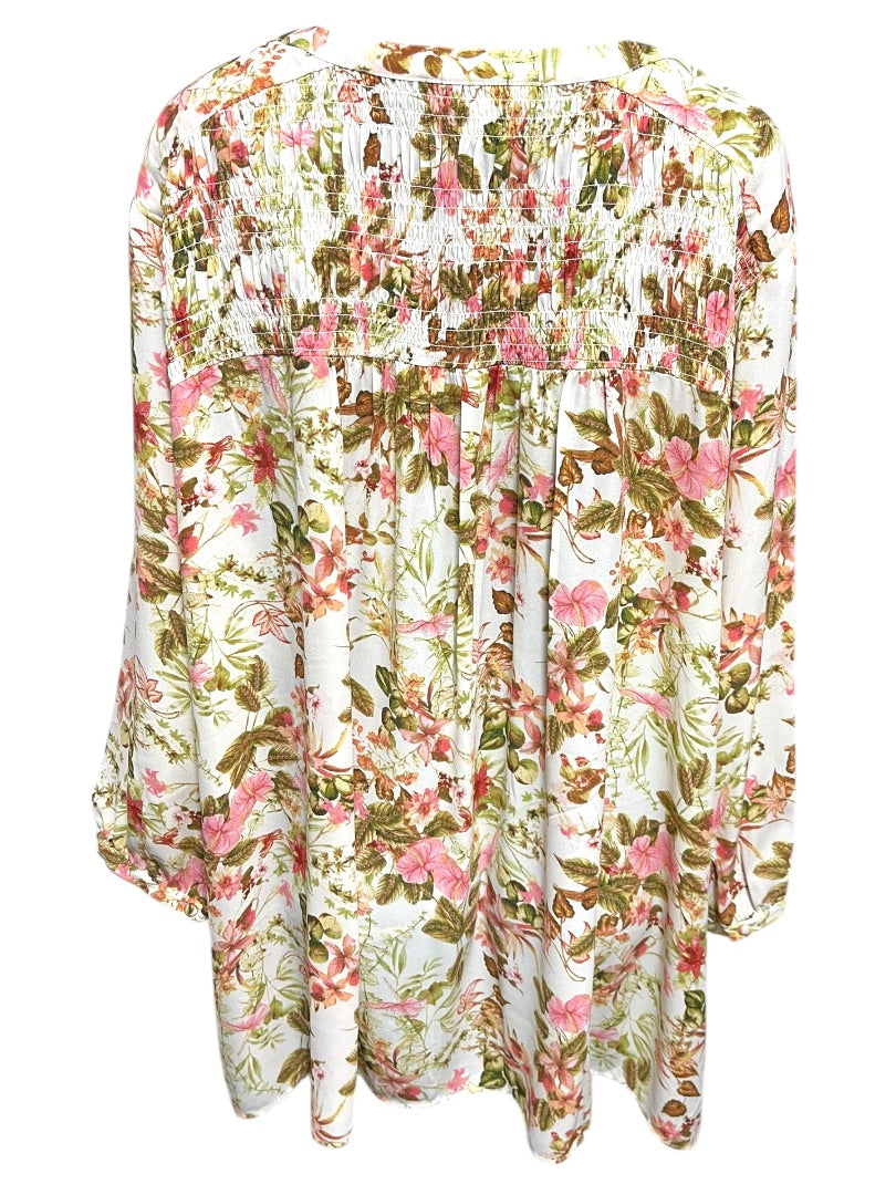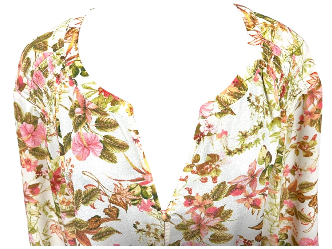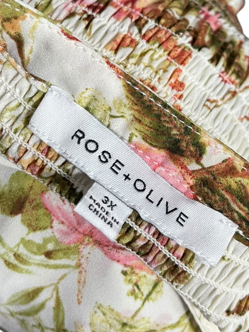 Size 3X Rose + Olive Floral 3/4 Sleeve Button Down Blouse Womens