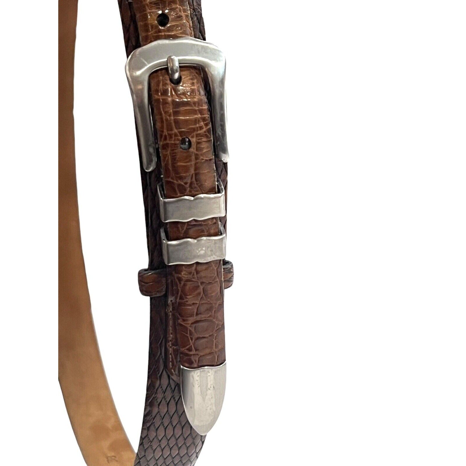 Size 38 Vintage Tulliani Mens Buckle Belt 1" Italian Calfskin 3127 Brown Texture