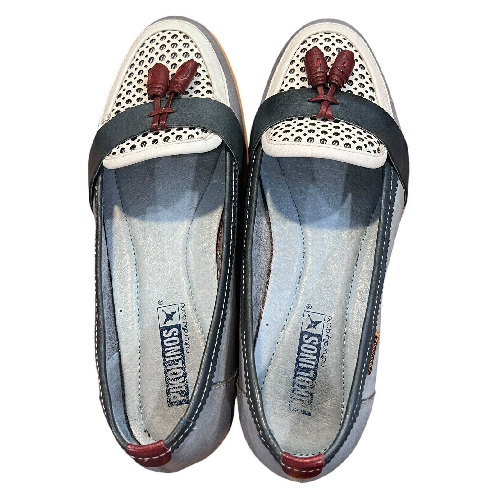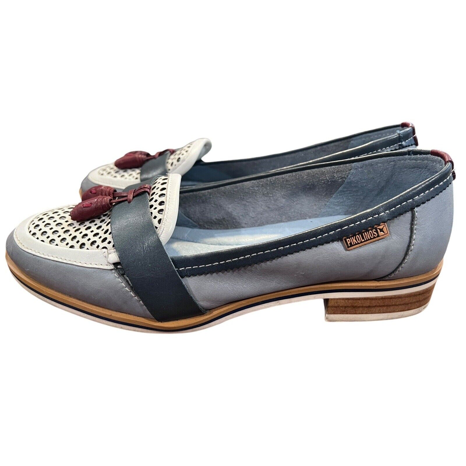 Size 6.5 7 (37) Women's Pikolinos Henares Loafer Blue Cream Tassel EUC