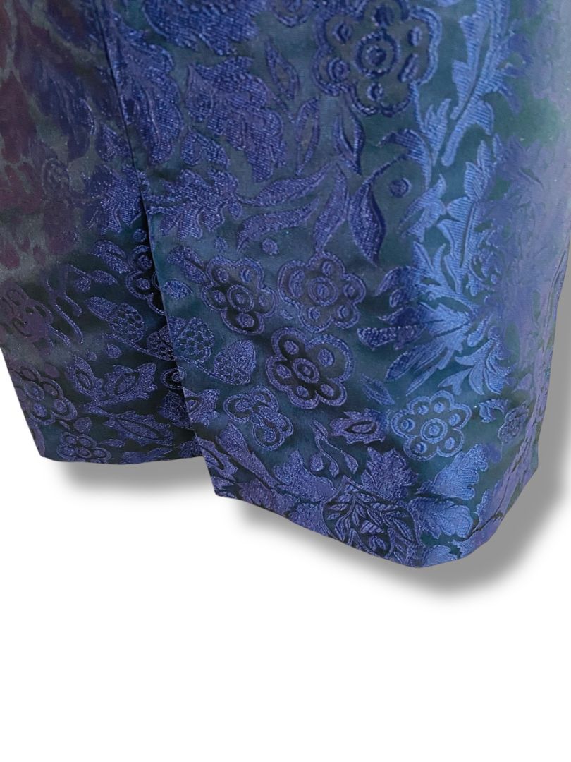 Size 8 Burberry New Navy Blue Floral Jacquard Satin Straight Skirt Knee Length