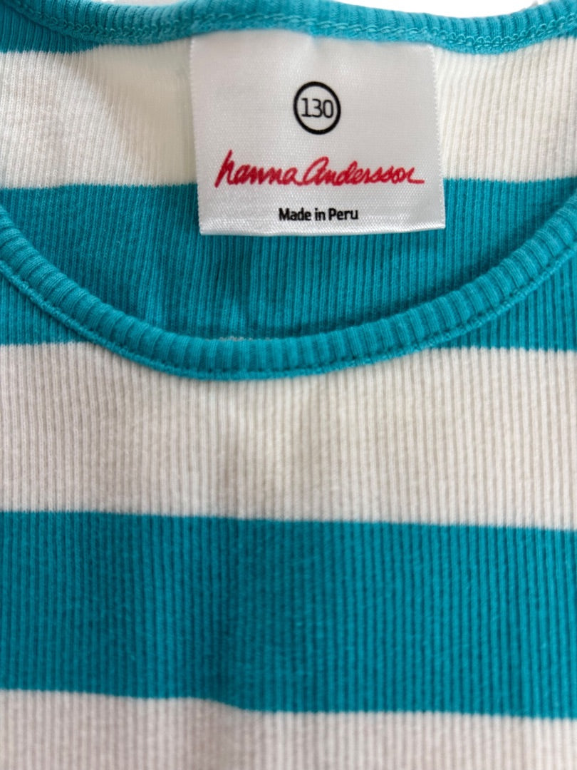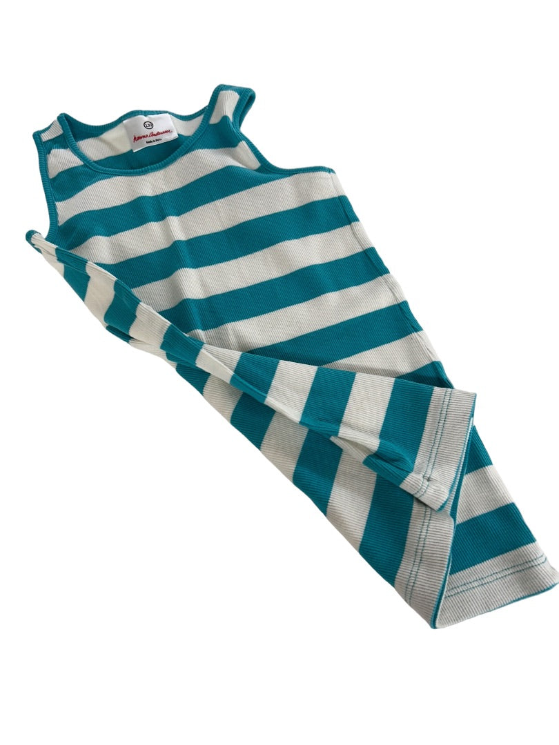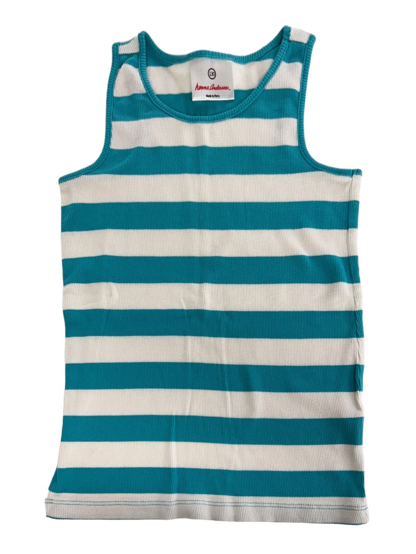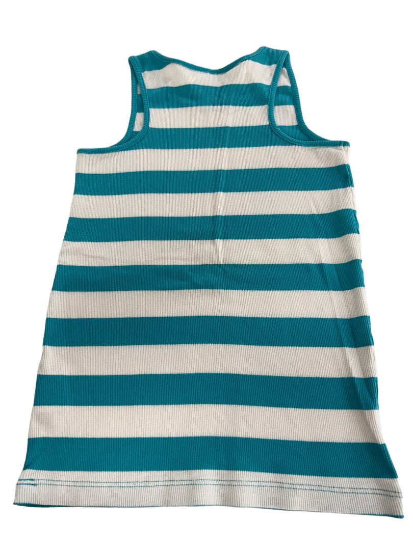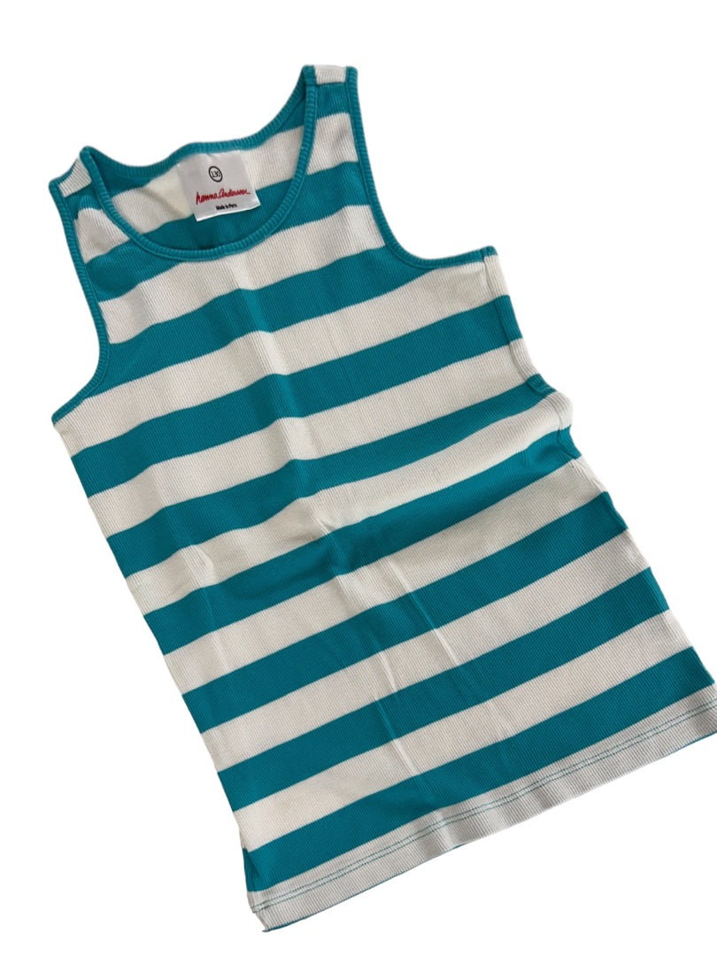 Size 8 Hanna Andersson Girls Striped Tank Top Teal White Pima Cotton