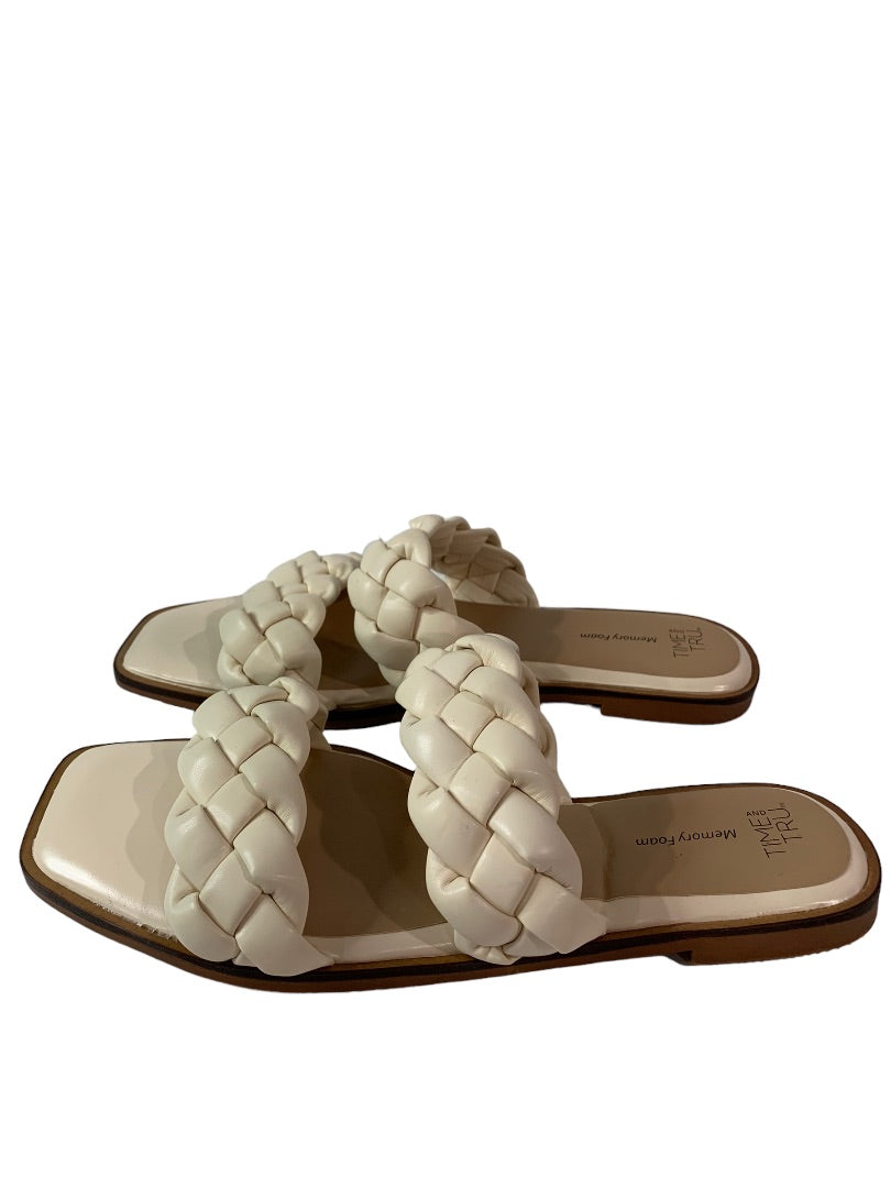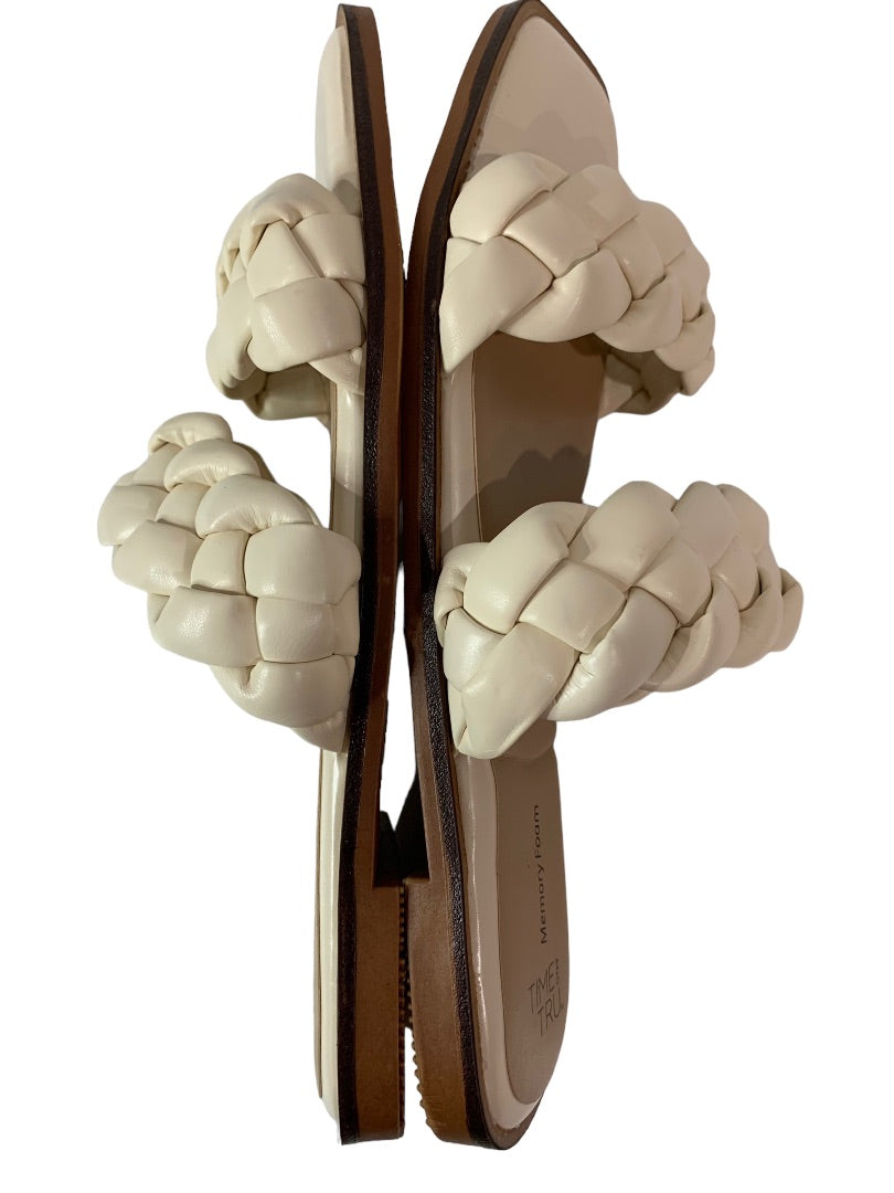 Size 8 Time & Tru Women's Slide Sandals Ivory Woven Vegan Leather Flats