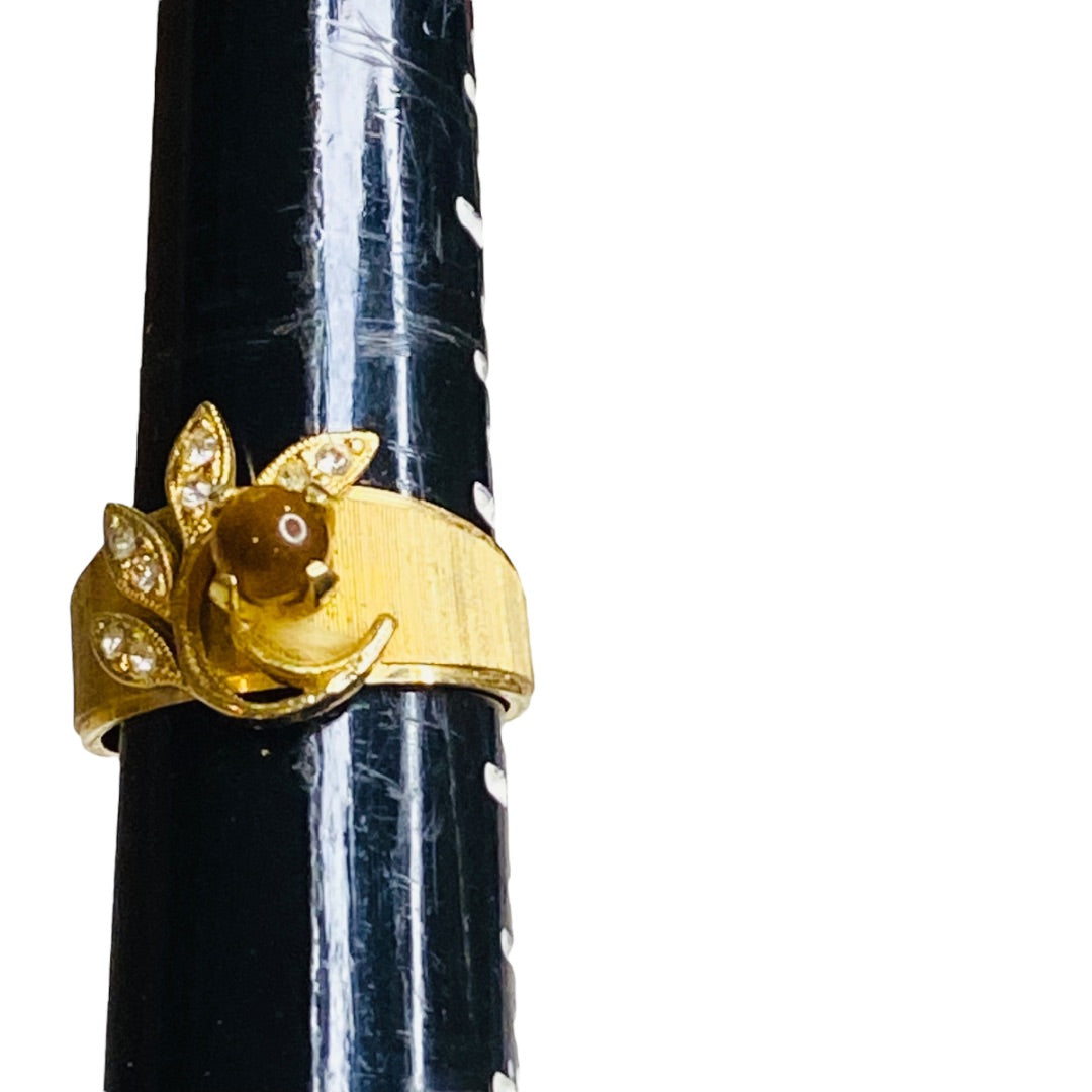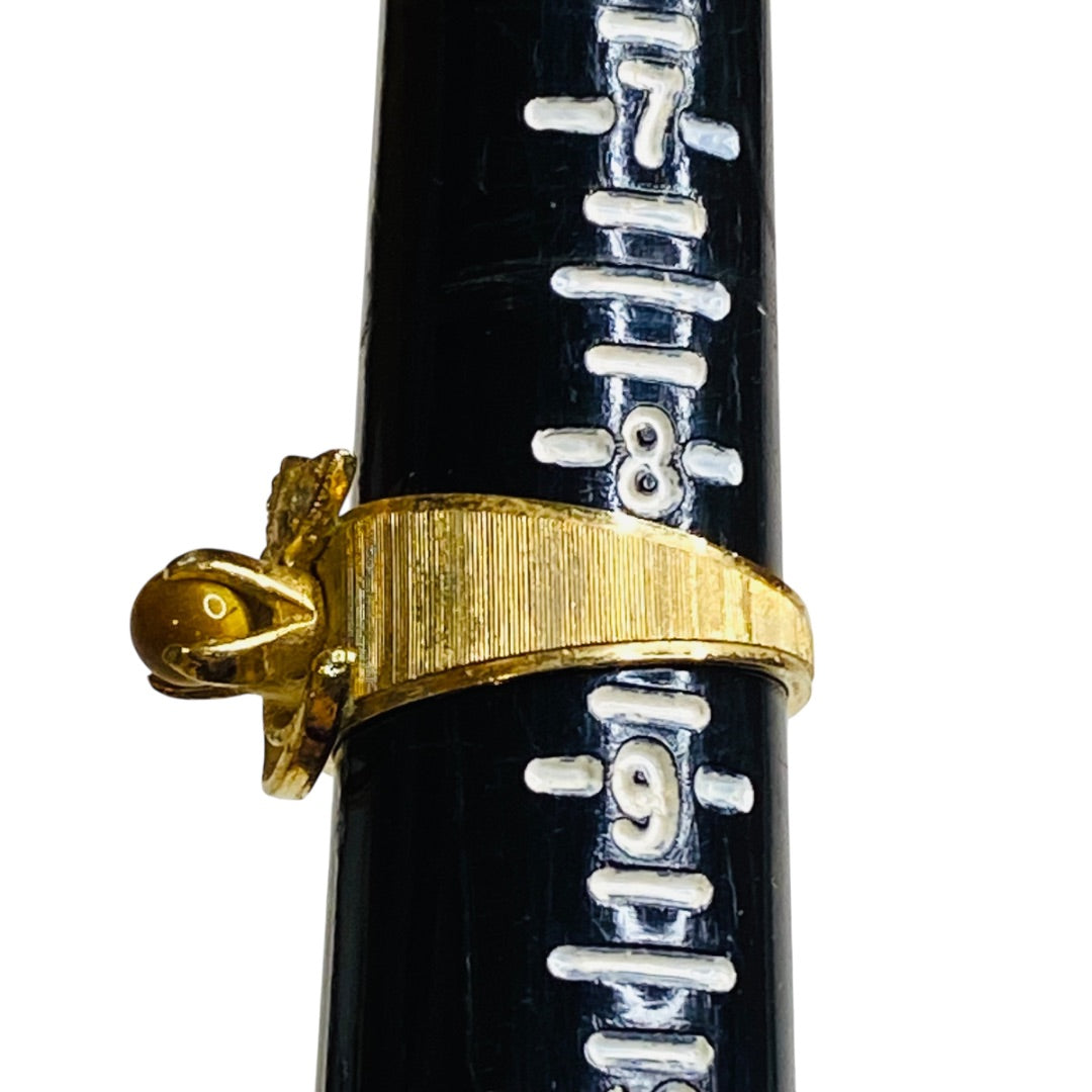 Size 8.5 Vintage Goldtone Ring Band Style Embellished Leaf Flower