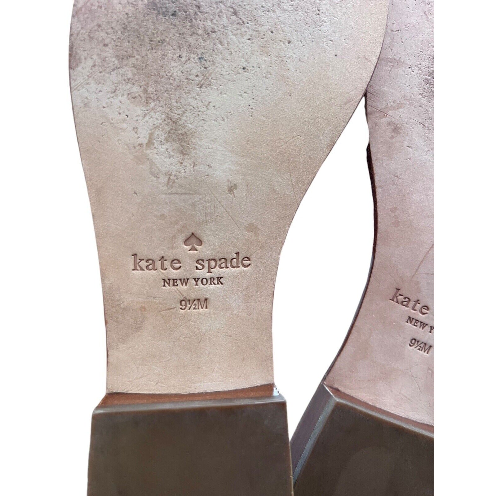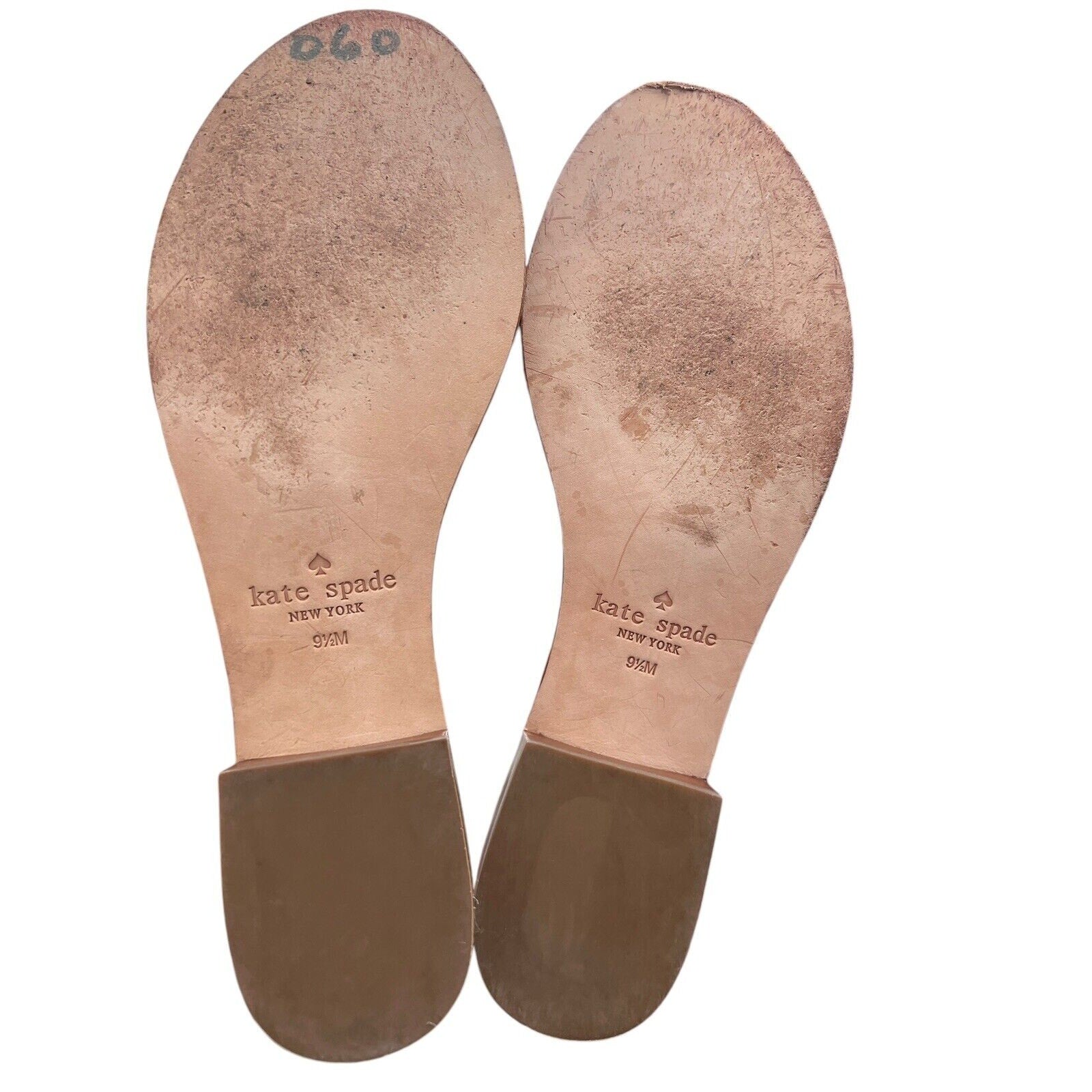Size 9.5 Kate Spade Ruffle Beau Leather Slide Sandals Gold Chain Preppy Coastal