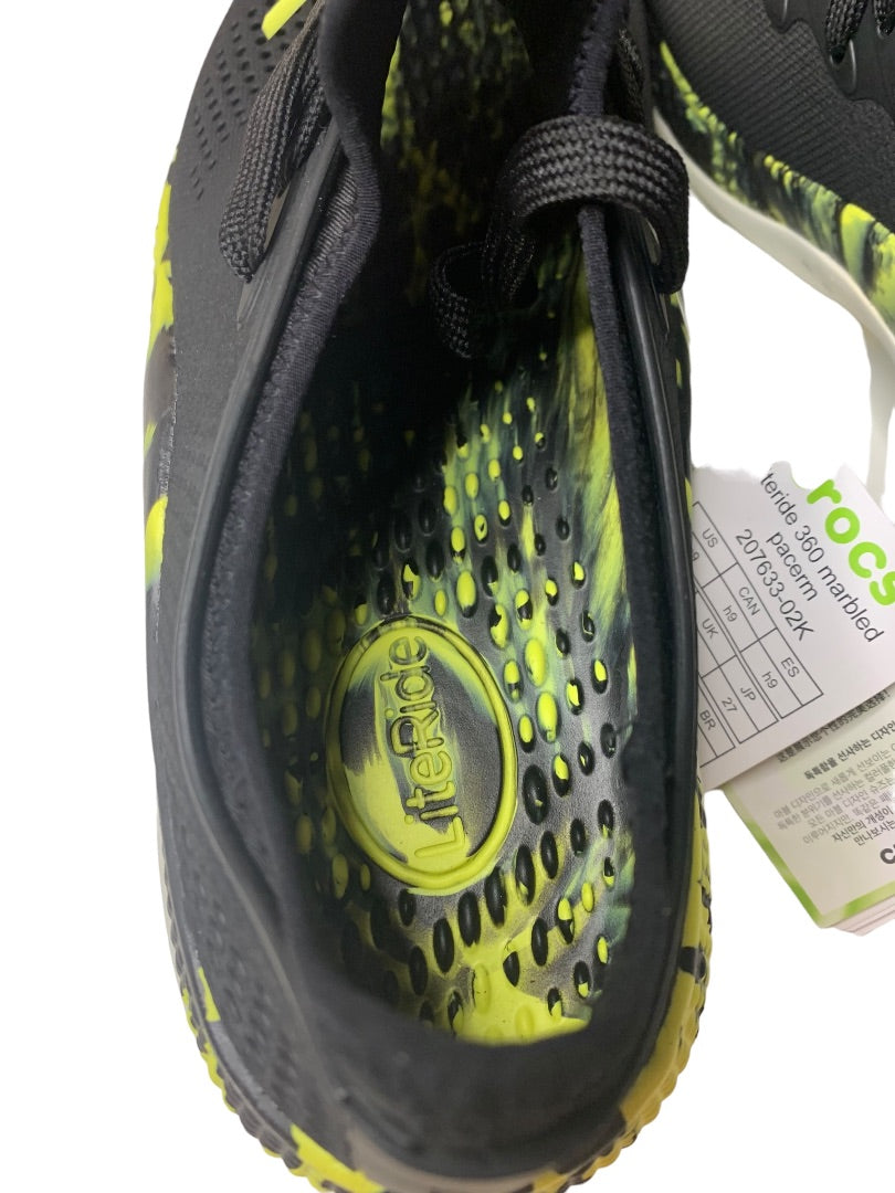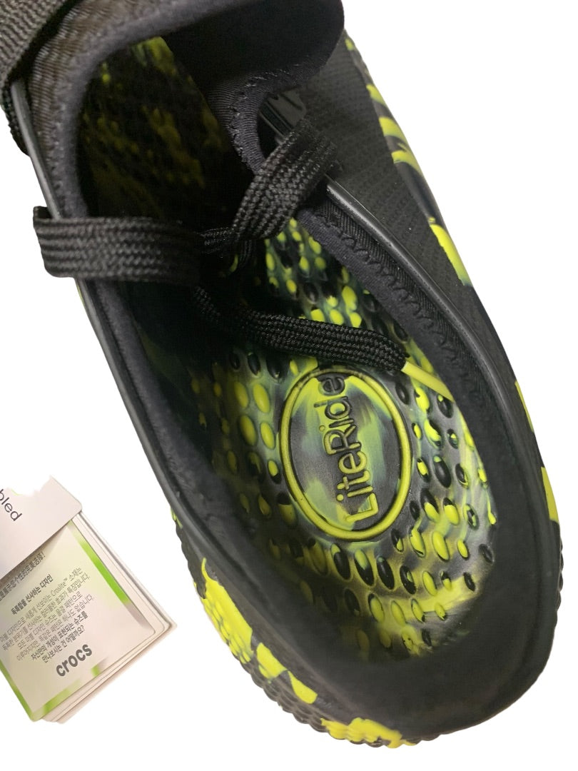 Size 9 Crocs LiteRide 360 Marbled Pacer Shoes Mens Sneakers Black Yellow New 207633