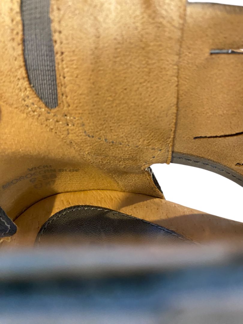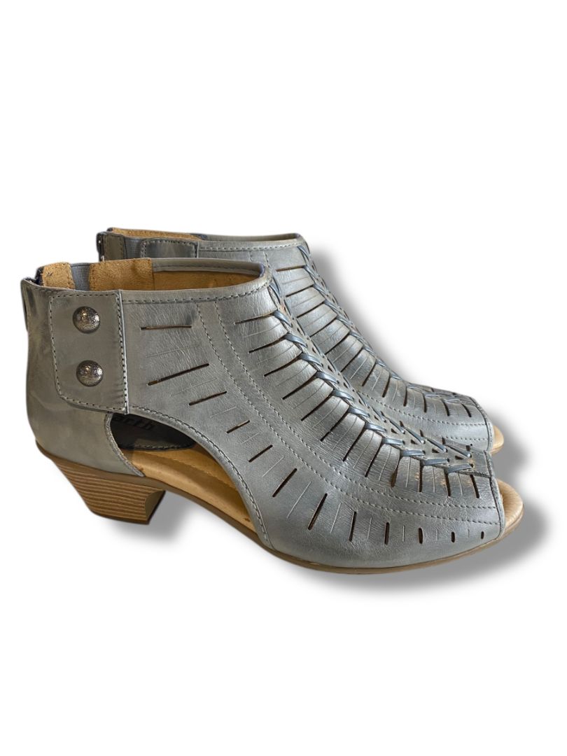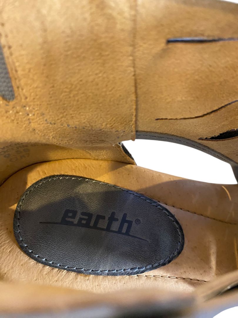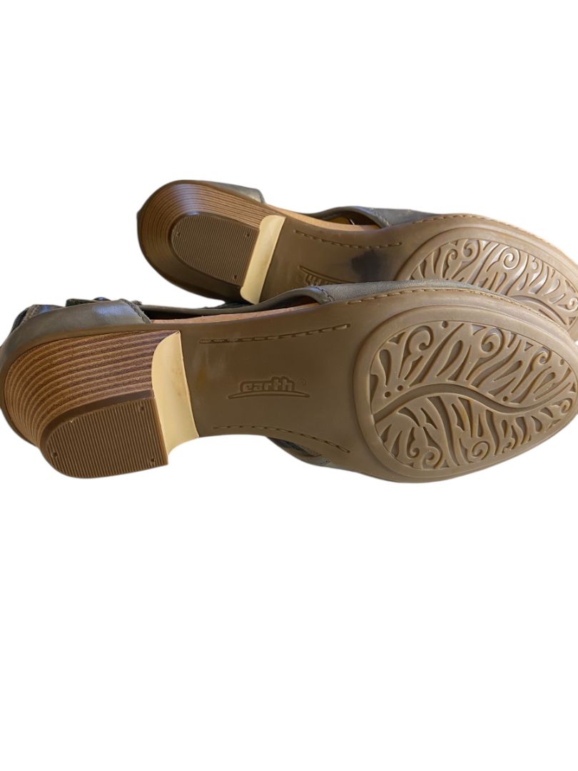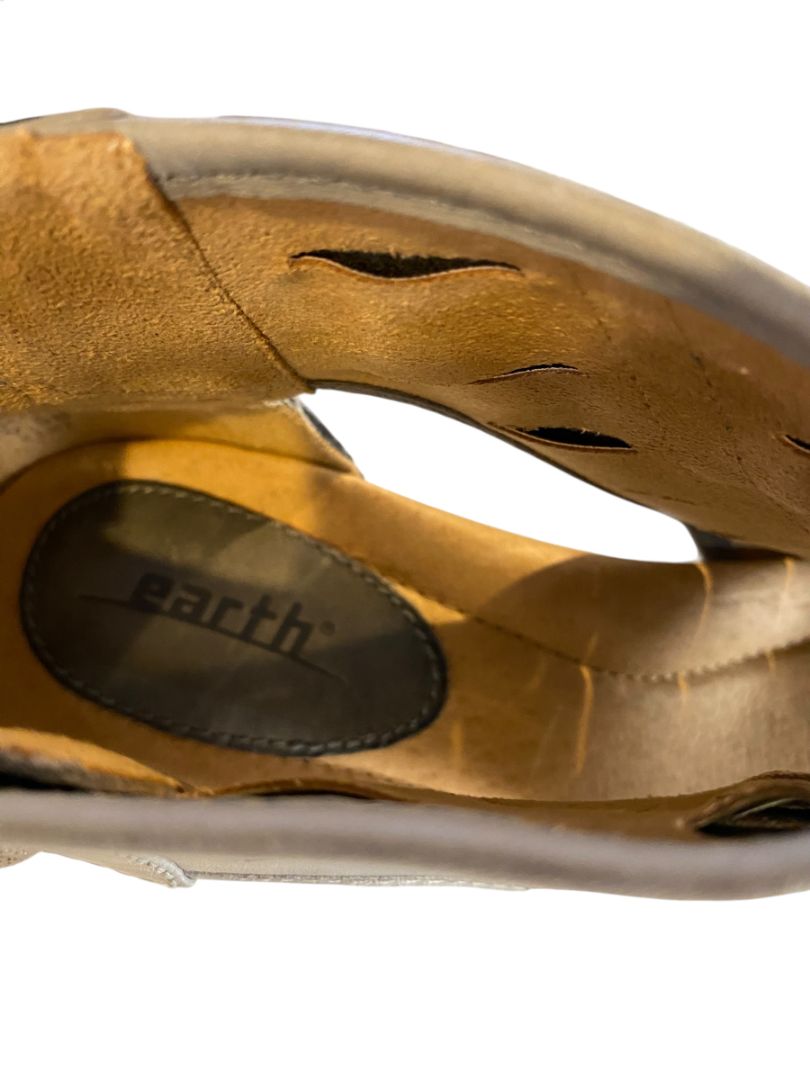 Size 9.5B Earth Vicki Moroccan Blue Leather Peep Toe 2" Heeled Sandals Womens