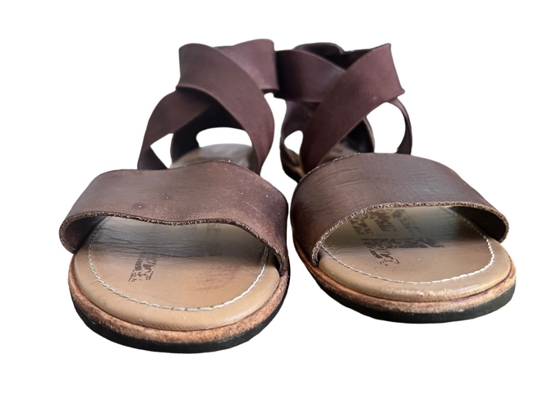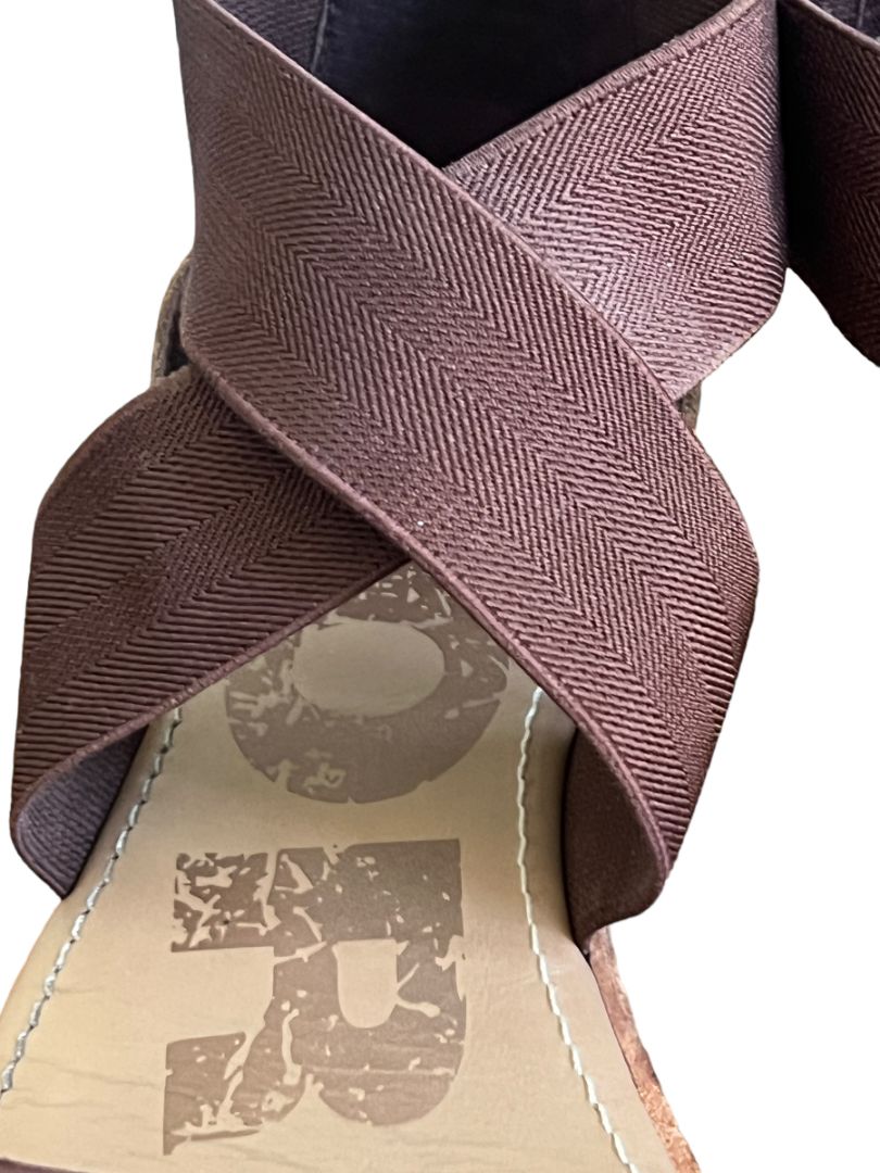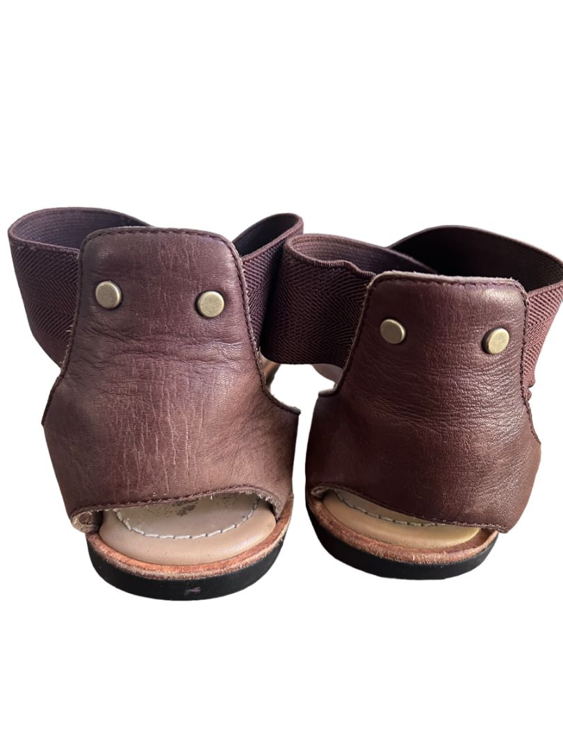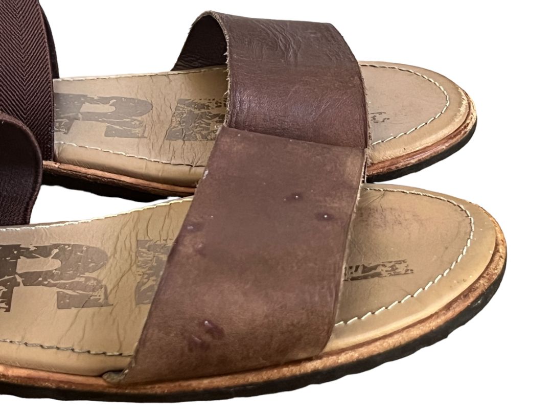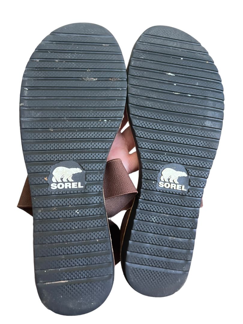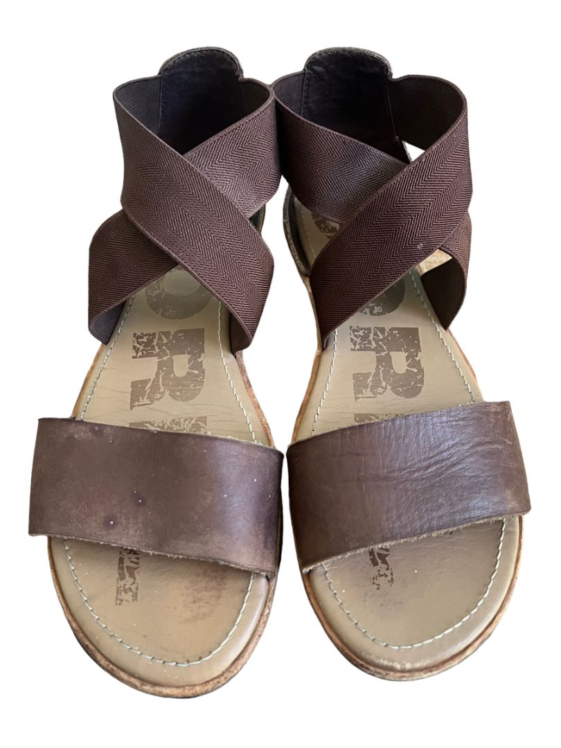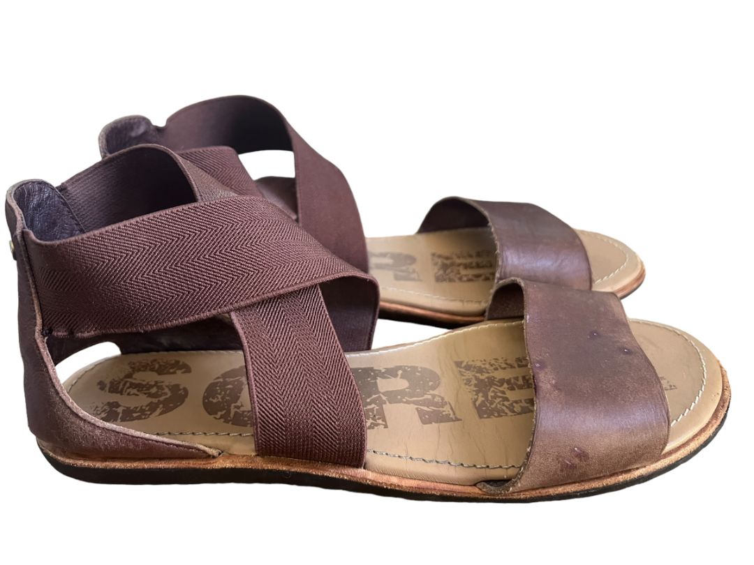 Size 9.5 Sorel Ella Leather Upper Sandals Brown Elastic Slip On