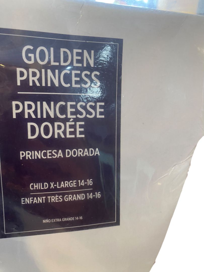 Size XL (14/16) Golden Princess Costume #1215 Amscan Dress Sheer Sleeves Crown