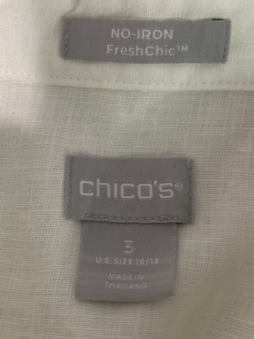 Size XL Chicos Womens Linen Tunic Button Up Blouse Shirt White