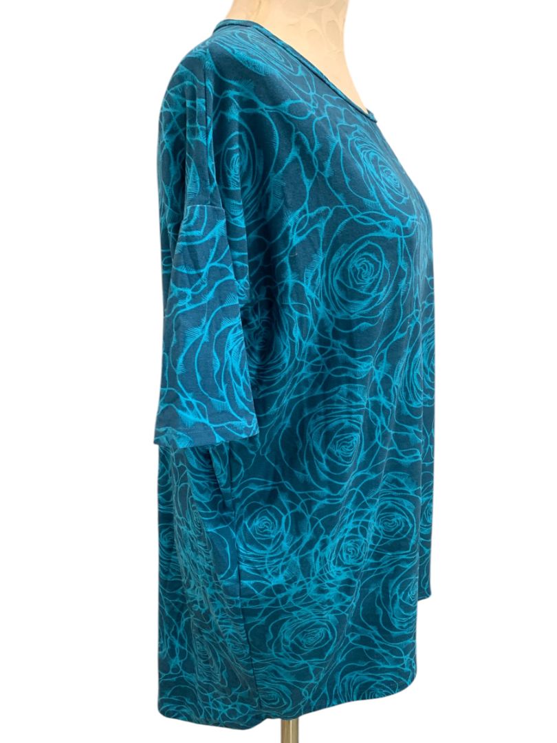 Size XXS LulaRoe Womens Tunic Tshirt Hi Lo Hem Teal Floral