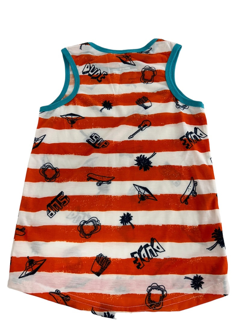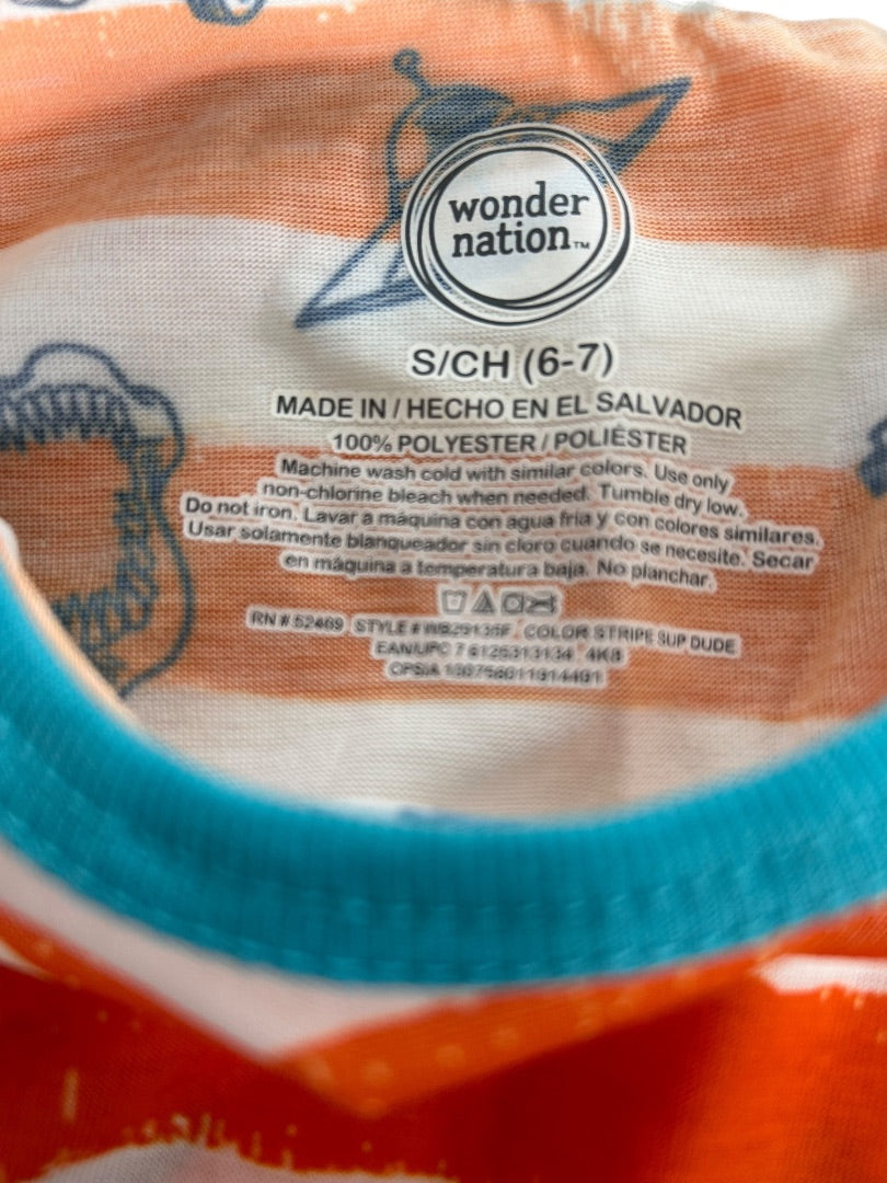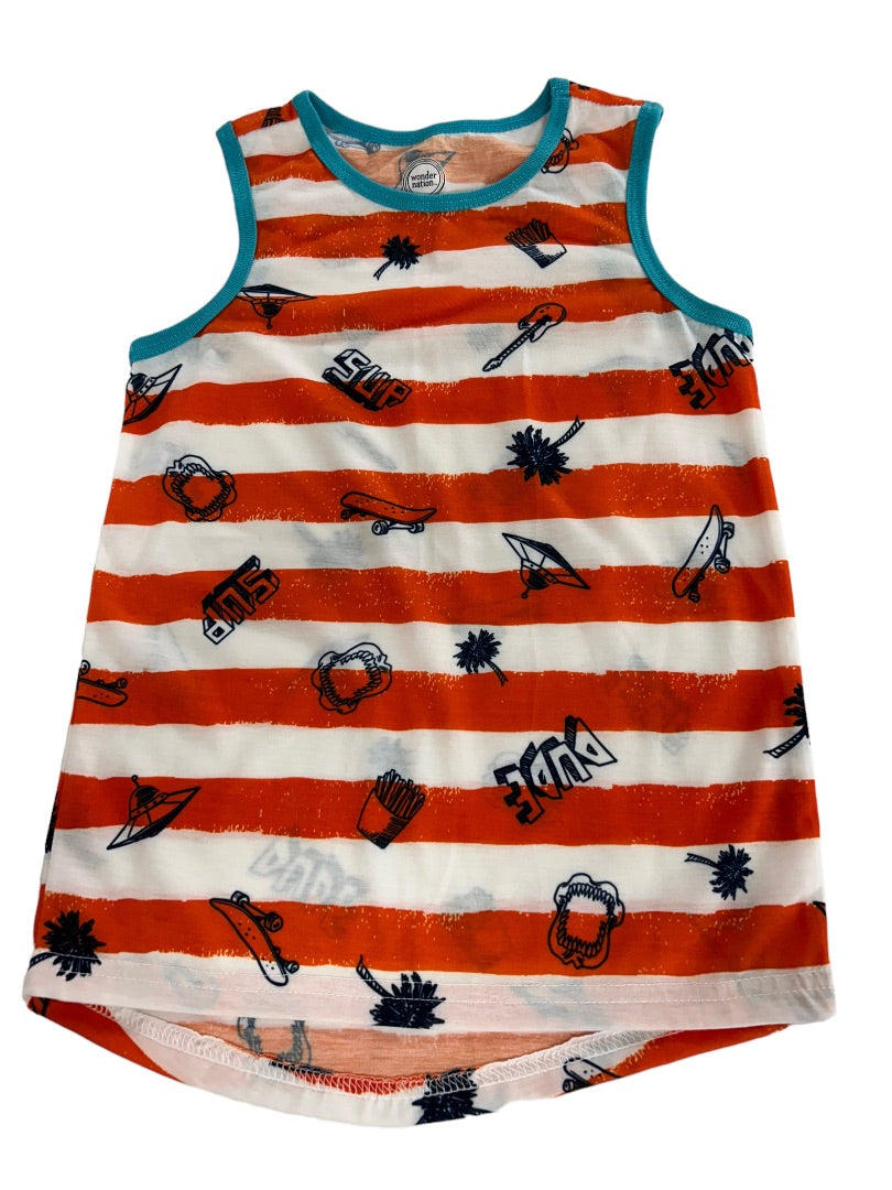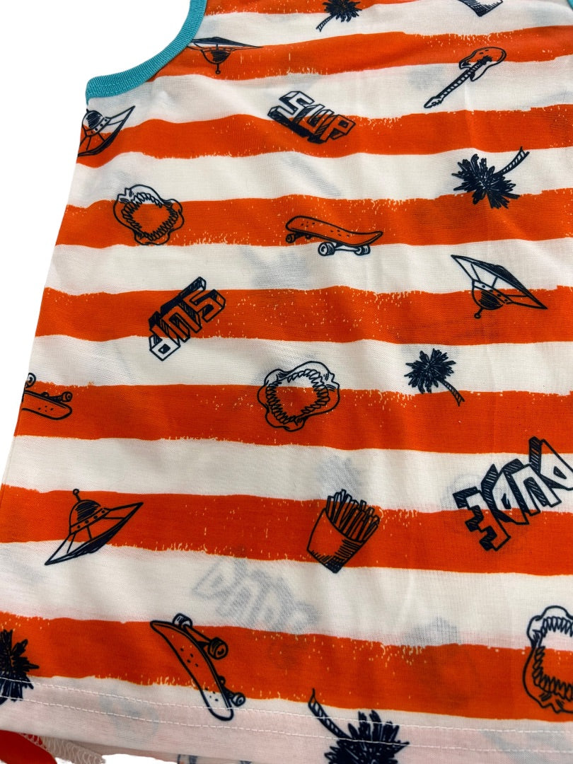 Small (6/7) Wonder Nation Boys Striped Tank Top Orange Teal Print