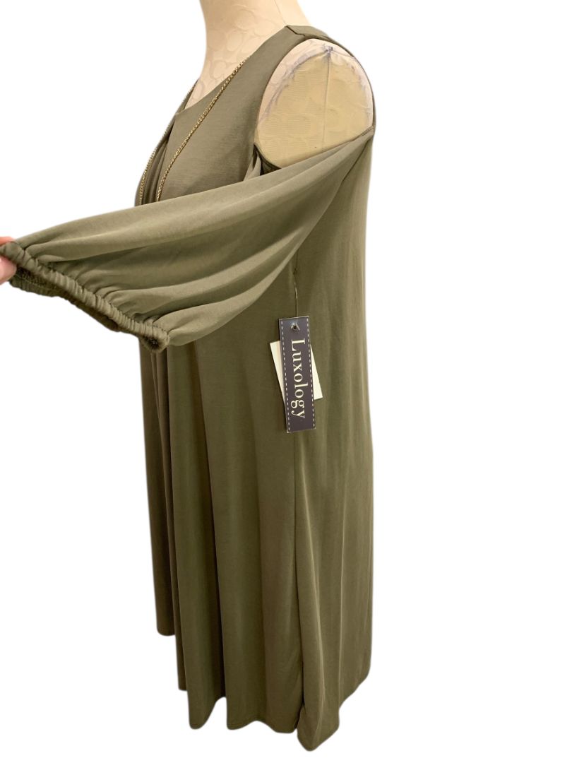Small Luxology Olive Green New Shift Dress Cold Shoulder Detachable Necklace